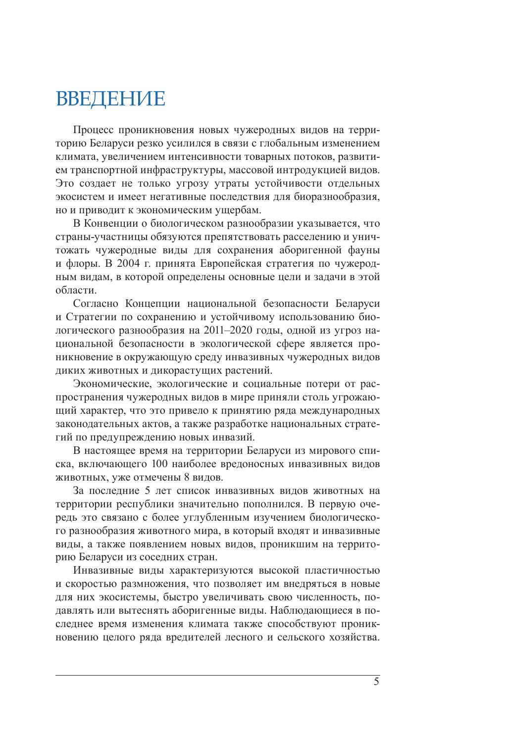 инвазивные виды – вредители сельского и рыбного хозяйства, включая карантинные виды; инвазивные виды – вредители лесного хозяйства; инвазивные виды, наносящие социальный ущерб. Для каждого вида приведены страна (регион) их происхождения, пути проникновения, экология и краткое описание вида, существующие и потенциальные экологические и экономические угрозы и ущербы, а также меры борьбы, если они разработаны. Книга включает фотографии инвазивных видов и карты их распространения по территории Беларуси. Книга рассчитана на широкий круг читателей, студентов, школьников, а также для сотрудников различного рода природоохранных учреждений.
