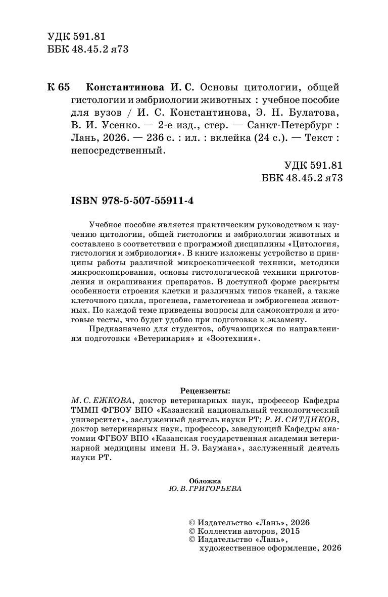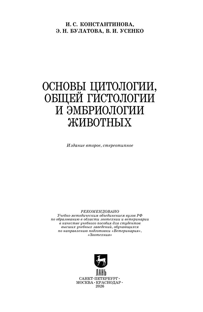 Учебное пособие является практическим руководством к изучению цитологии, общей гистологии и эмбриологии животных и составлено в соответствии с программой дисциплины "Цитология, гистология и эмбриология". В книге изложены устройство и принципы работы различной микроскопической техники, методики микроскопирования, основы гистологической техники приготовления и окрашивания препаратов. В доступной форме раскрыты особенности строения клетки и различных типов тканей, а также клеточного цикла, прогенеза, гаметогенеза и эмбриогенеза животных. По каждой теме приведены вопросы для самоконтроля и итоговые тесты, что будет удобно при подготовке к экзамену.Предназначено для студентов, обучающихся по направлениям подготовки (специальности) "Ветеринария" и "Зоотехния".