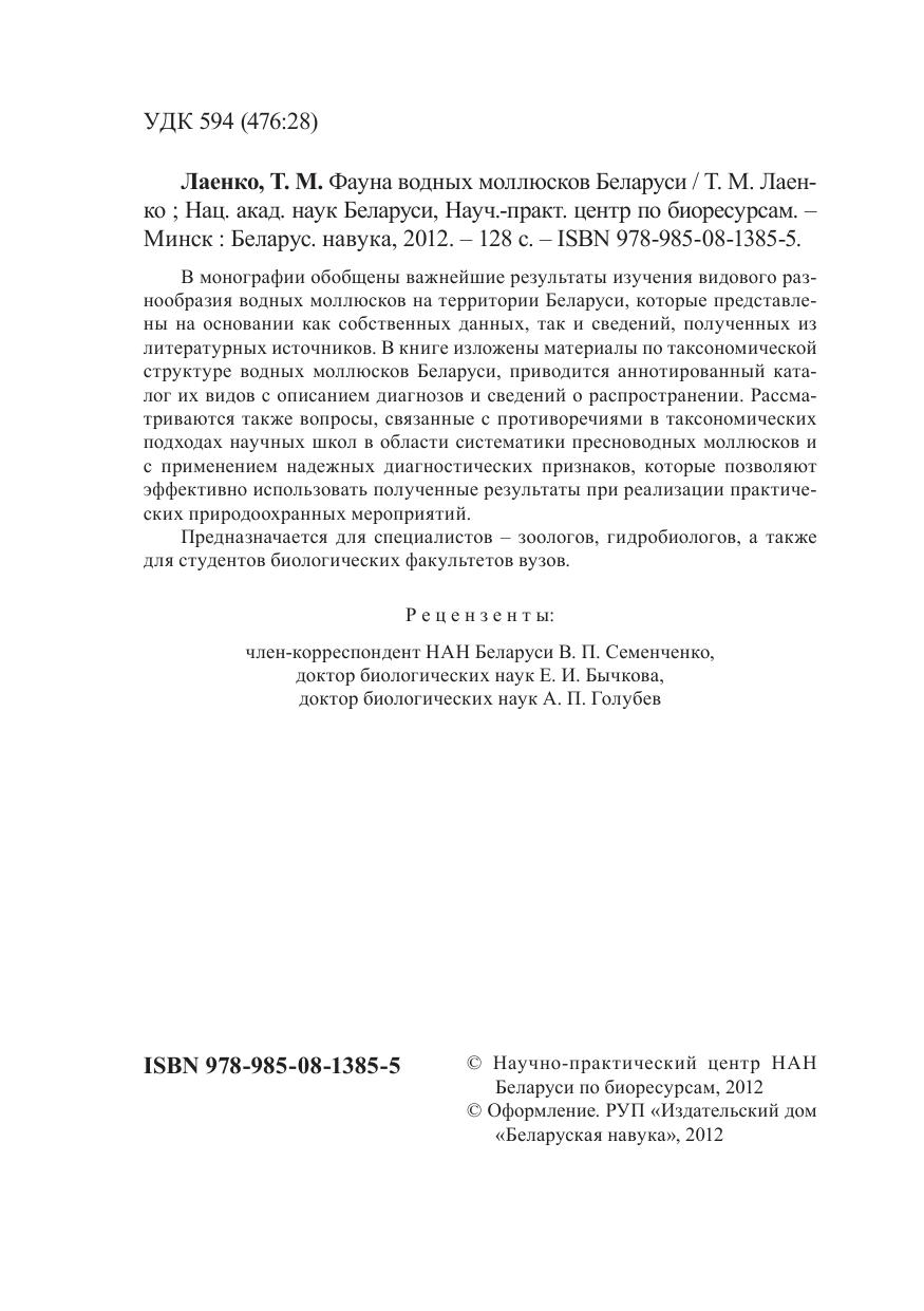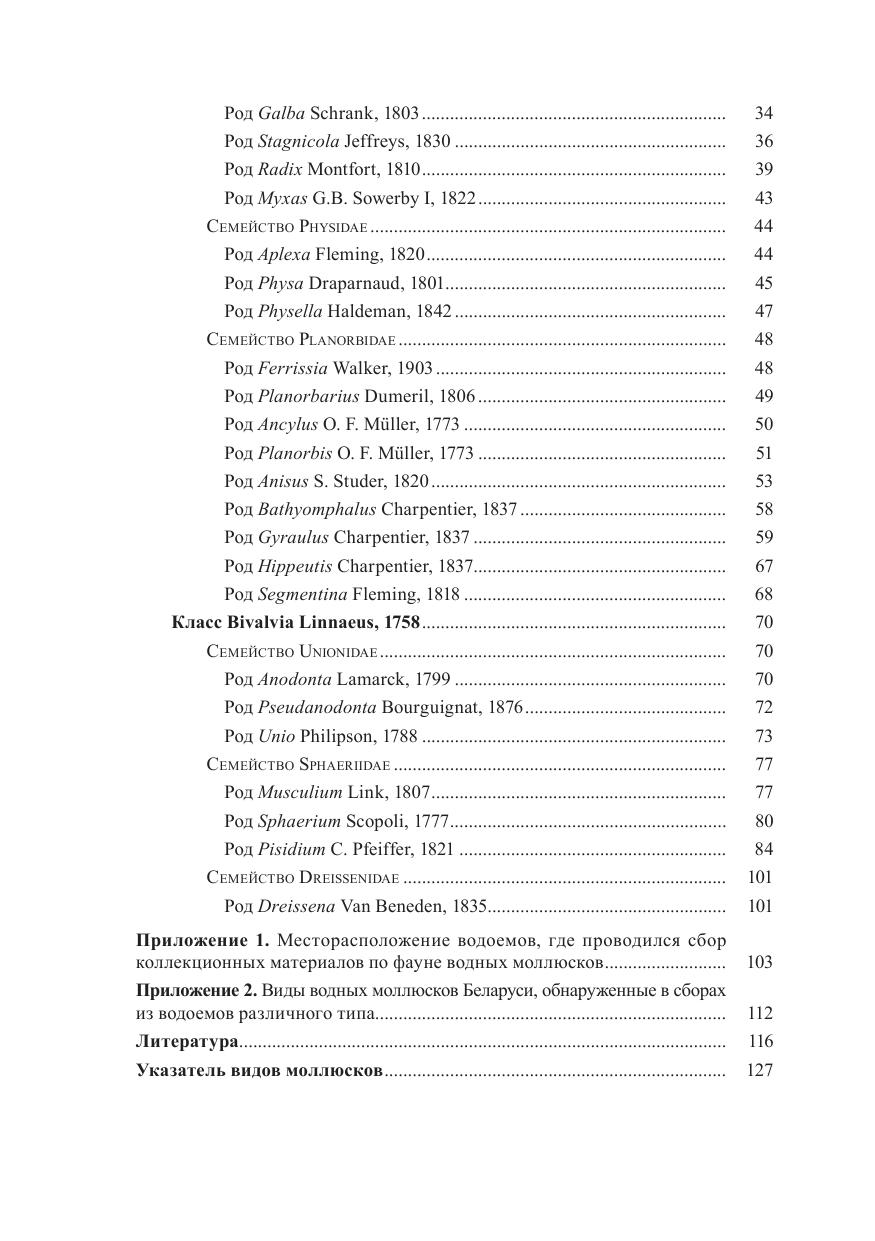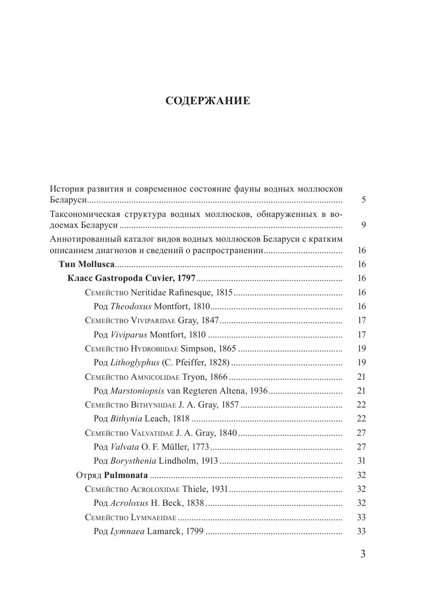 В монографии обобщены важнейшие результаты изучения видового разнообразия водных моллюсков на территории Беларуси, которые представлены на основании как собственных данных, так и сведений, полученных из литературных источников. В книге изложены материалы по таксономической структуре водных моллюсков Беларуси, приводится аннотированный каталог их видов с описанием диагнозов и сведений о распространении. Рассматриваются также вопросы, связанные с противоречиями в таксономических подходах научных школ в области систематики пресноводных моллюсков и с применением надежных диагностических признаков, которые позволяют эффективно использовать полученные результаты при реализации практических природоохранных мероприятий. Предназначается для специалистов – зоологов, гидробиологов, а также для студентов биологических факультетов вузов.