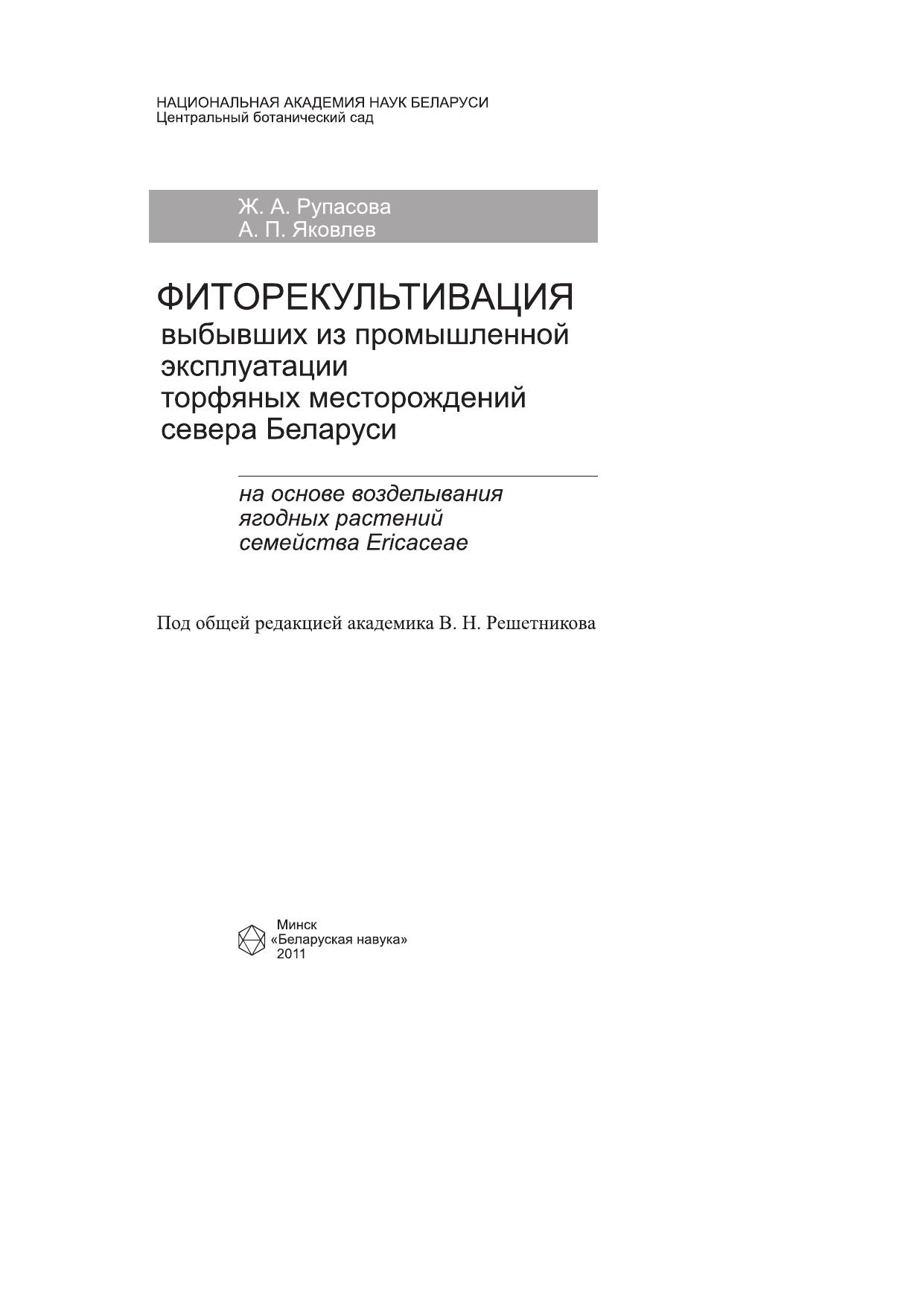 Фиторекультивация выбывших из промышленной эксплуатации торфяных месторождений севера Беларуси на основе возделывания ягодных растений семейства Ericaceae