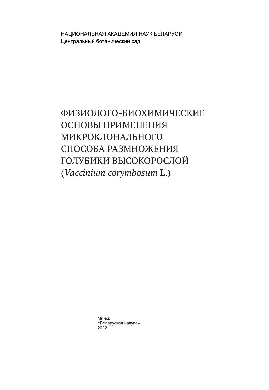 Физиолого-биохимические основы применения микроклонального способа размножения голубики высокорослой (Vaсcinium corymbosum L.)