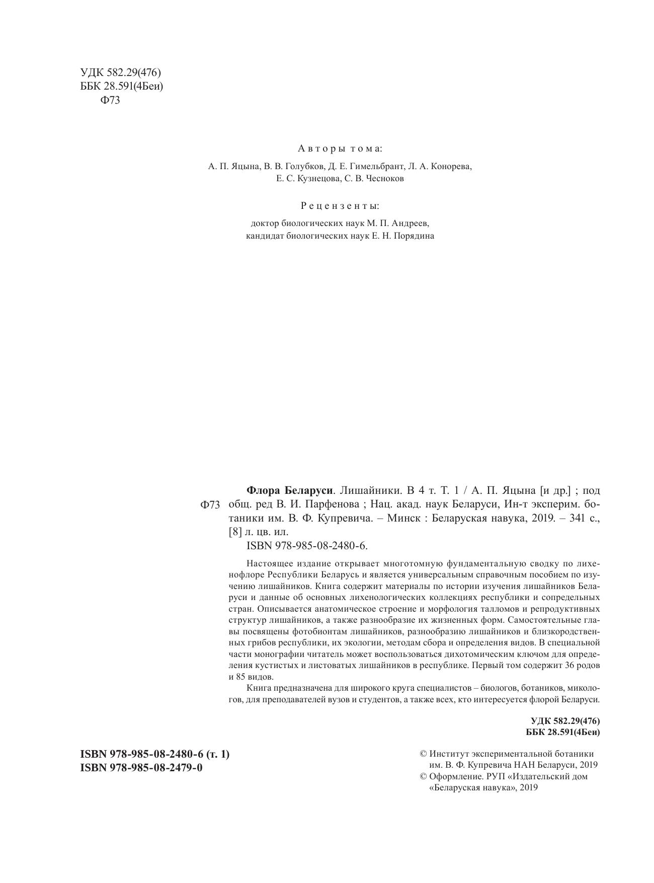 Флора Беларуси. Лишайники. В 4 т. Т. 1