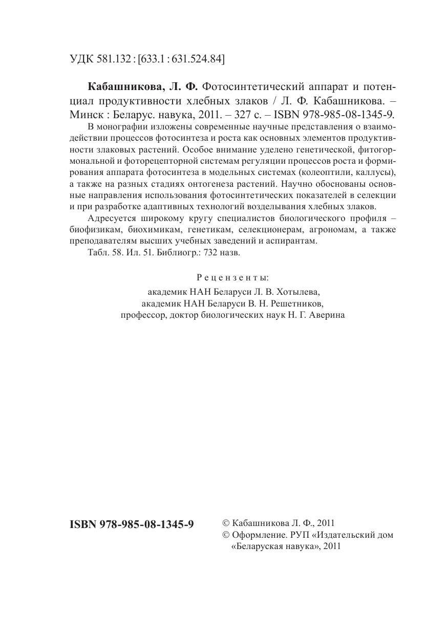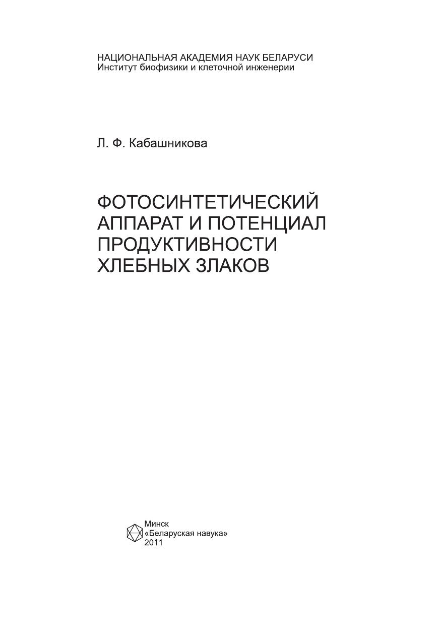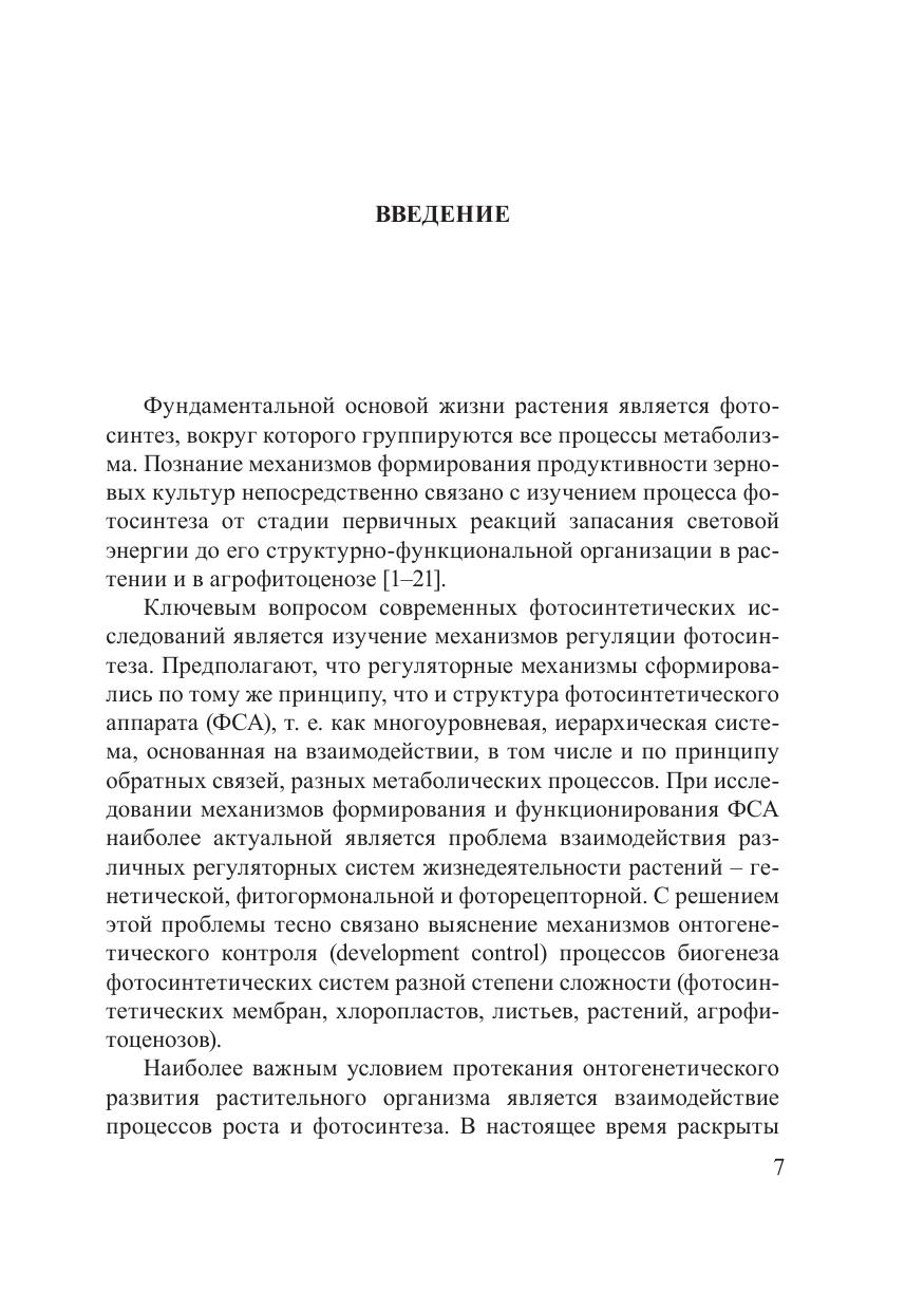 В монографии изложены современные научные представления о взаимодействии процессов фотосинтеза и роста как основных элементов продуктив- ности злаковых растений. Особое внимание уделено генетической, фитогормональной и фоторецепторной системам регуляции процессов роста и формирования аппарата фотосинтеза в модельных системах (колеоптили, каллусы), а также на разных стадиях онтогенеза растений. Научно обоснованы основ- ные направления использования фотосинтетических показателей в селекции и при разработке адаптивных технологий возделывания хлебных злаков. Адресуется широкому кругу специалистов биологического профиля – биофизикам, биохимикам, генетикам, селекционерам, агрономам, а также пре одавателям высших учебных заведений и аспирантам.
