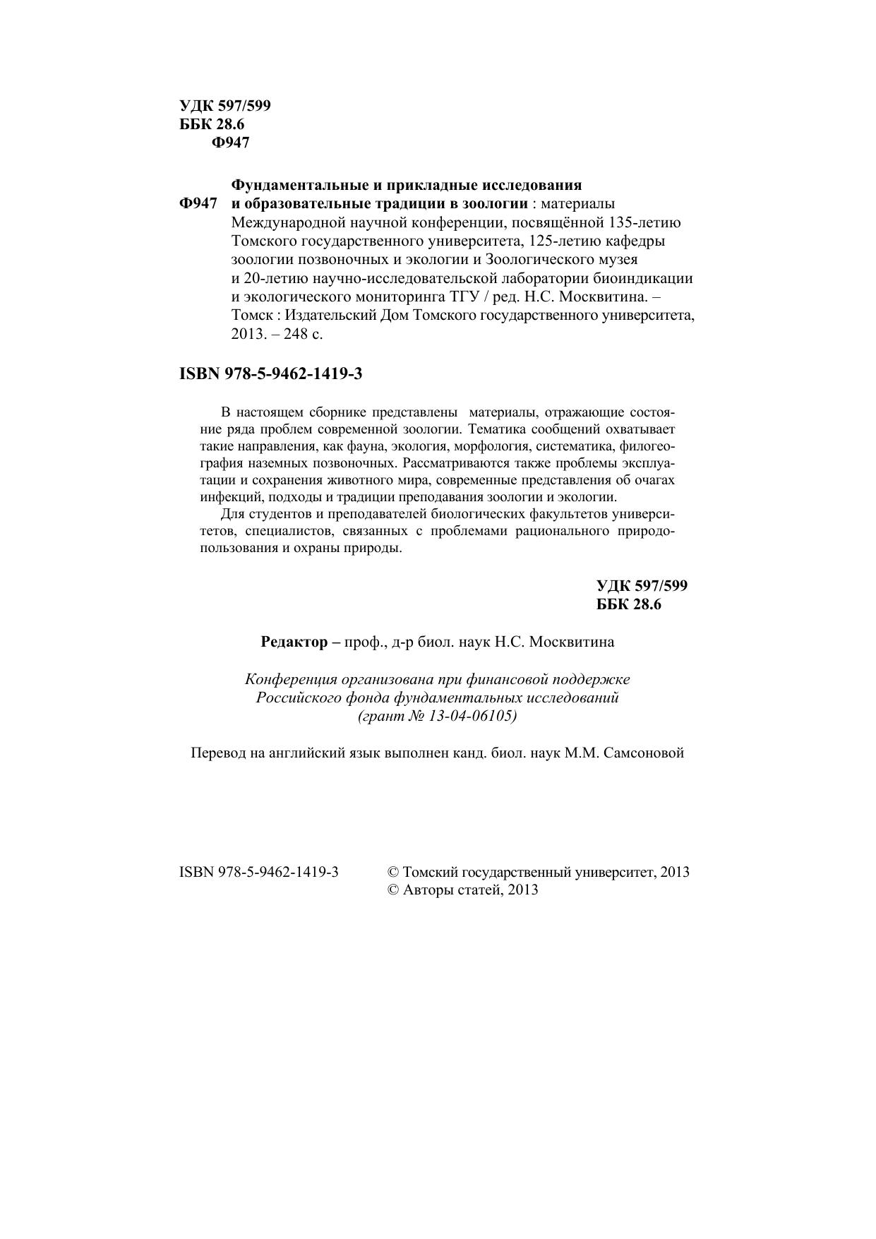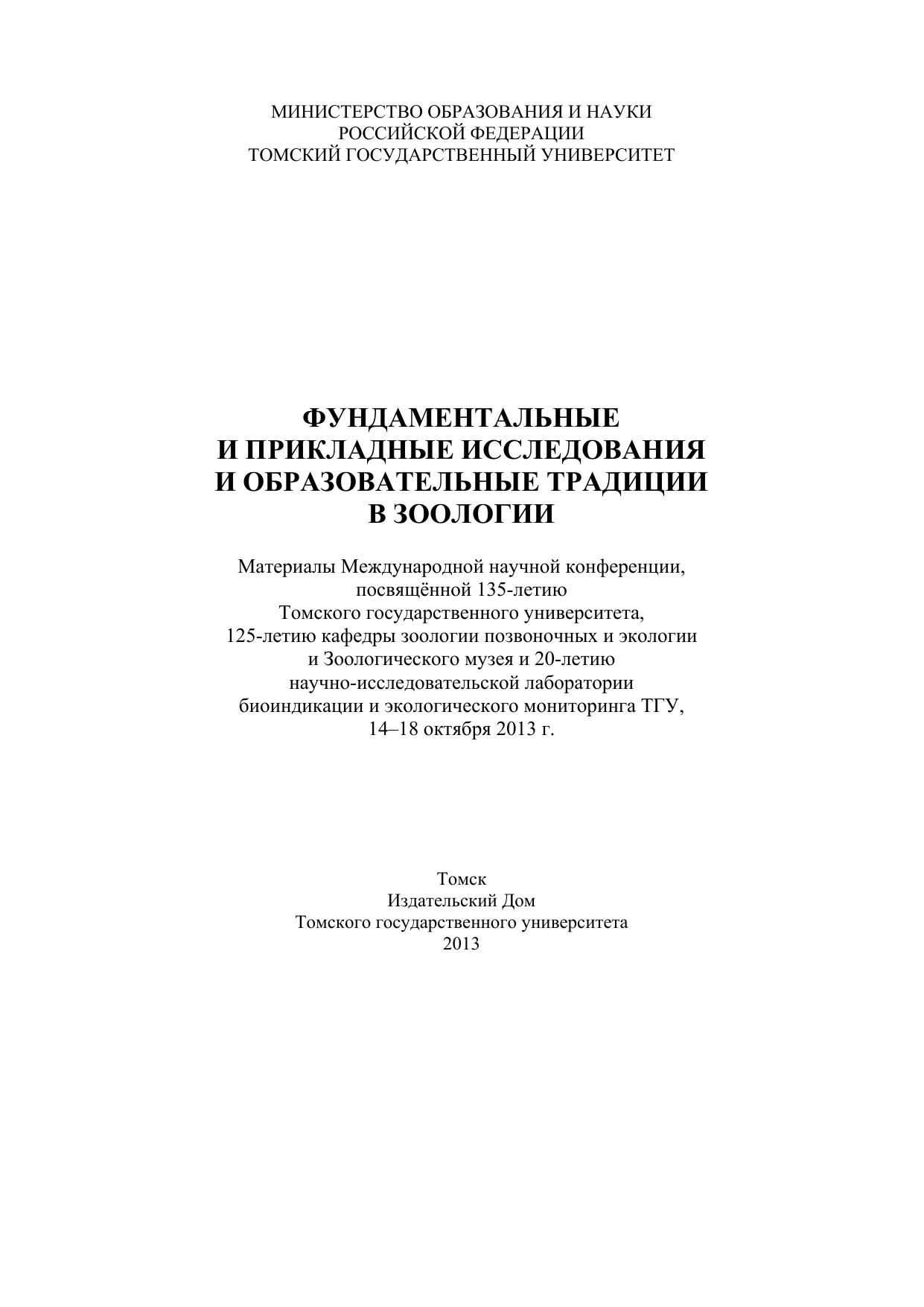 Фундаментальные и прикладные исследования и образовательные традиции в зоологии