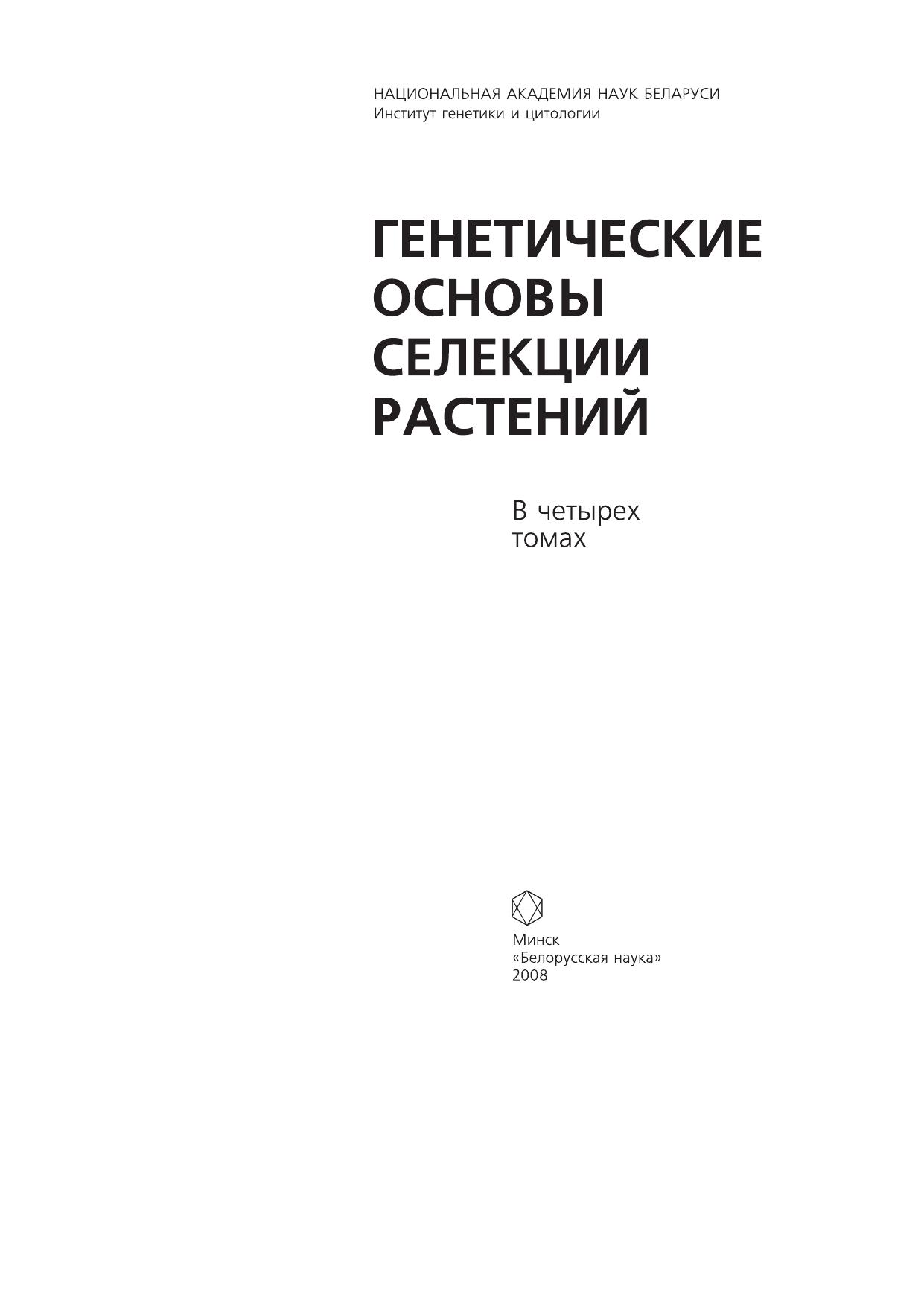 Настоящий коллективный труд, подготовленный учеными Белорусского общества генетиков и селекционеров, посвящен разработке и применению генетических и биотехнологических методов в селекции растений в соответствии с ее основными приоритетами: расширением спектра генетической изменчивости, повышением эффективности отбора и информативности селекционнoгo процесса, сокращением сроков создания сортов и гибридов. Особое внимание будет уделено биотехнологическим методам в селекции растений: клеточной, гаметной и зиготной селекции, гаплоидии, селекции на основе маркеров, созданию трансгенных организмов и биобезопасности. В первом томе обобщены результаты многолетних экспериментальных и теоретических исследований, направленных на совершенствование методологии и методики селекции растений, включая экологические аспекты селекции, проблемы гетерозиса и генетики количественных признаков, рекуррентного отбора, фитоиммунитета, нехромосомной наследственности, отдаленной гибридизации и др. Книга рассчитана на научных работников в области генетики и селекции растений, преподавателей и студентов биологических и сельскохозяйственных вузов, специалистов сельского хозяйства.