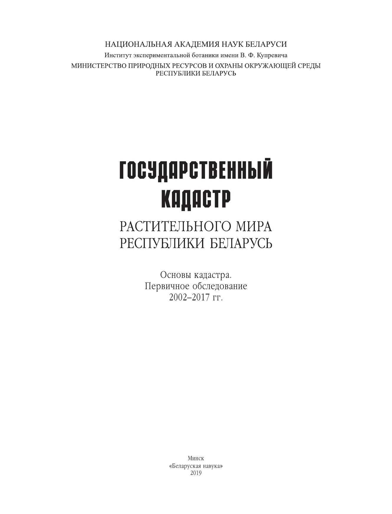 Государственный кадастр растительного мира Республики Беларусь. Основы кадастра. Первичное обследование 2002–2017 гг.
