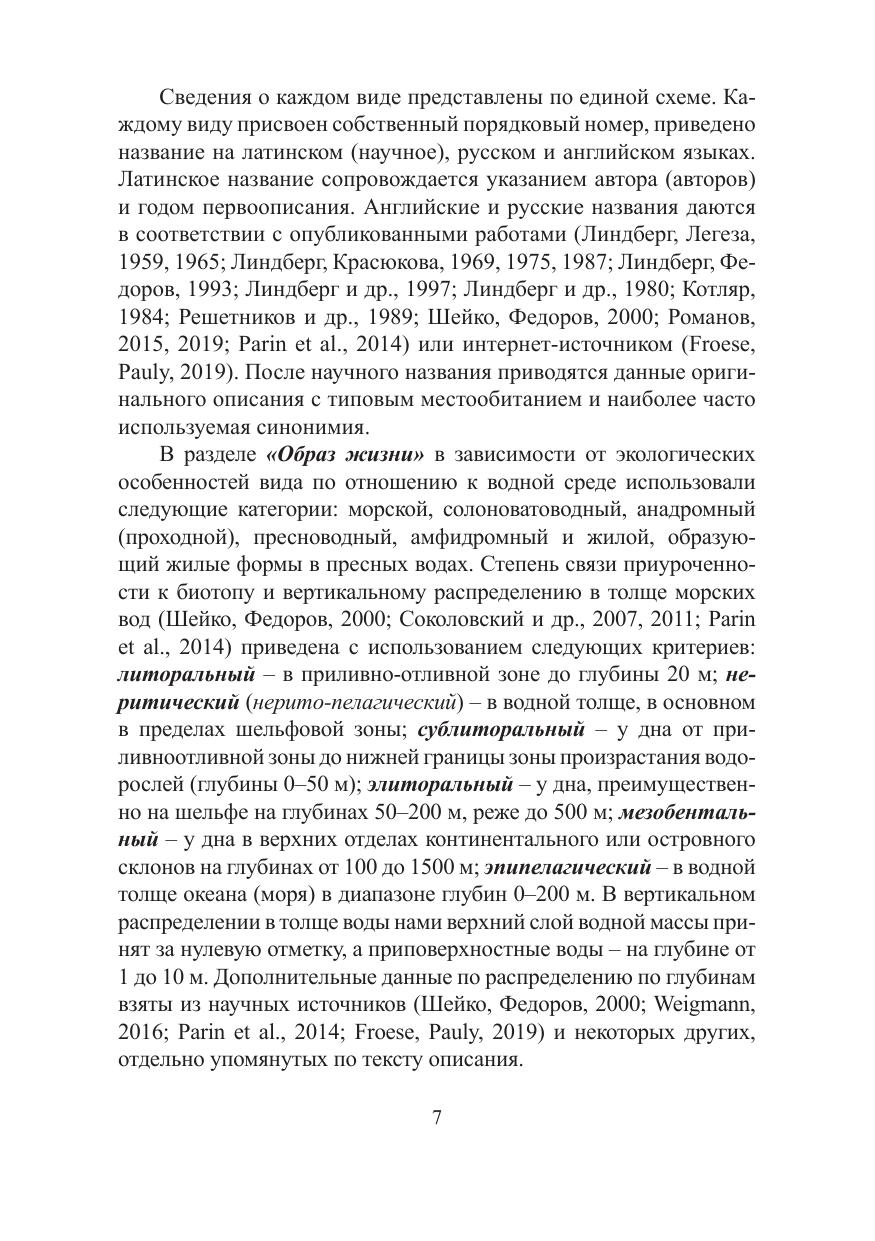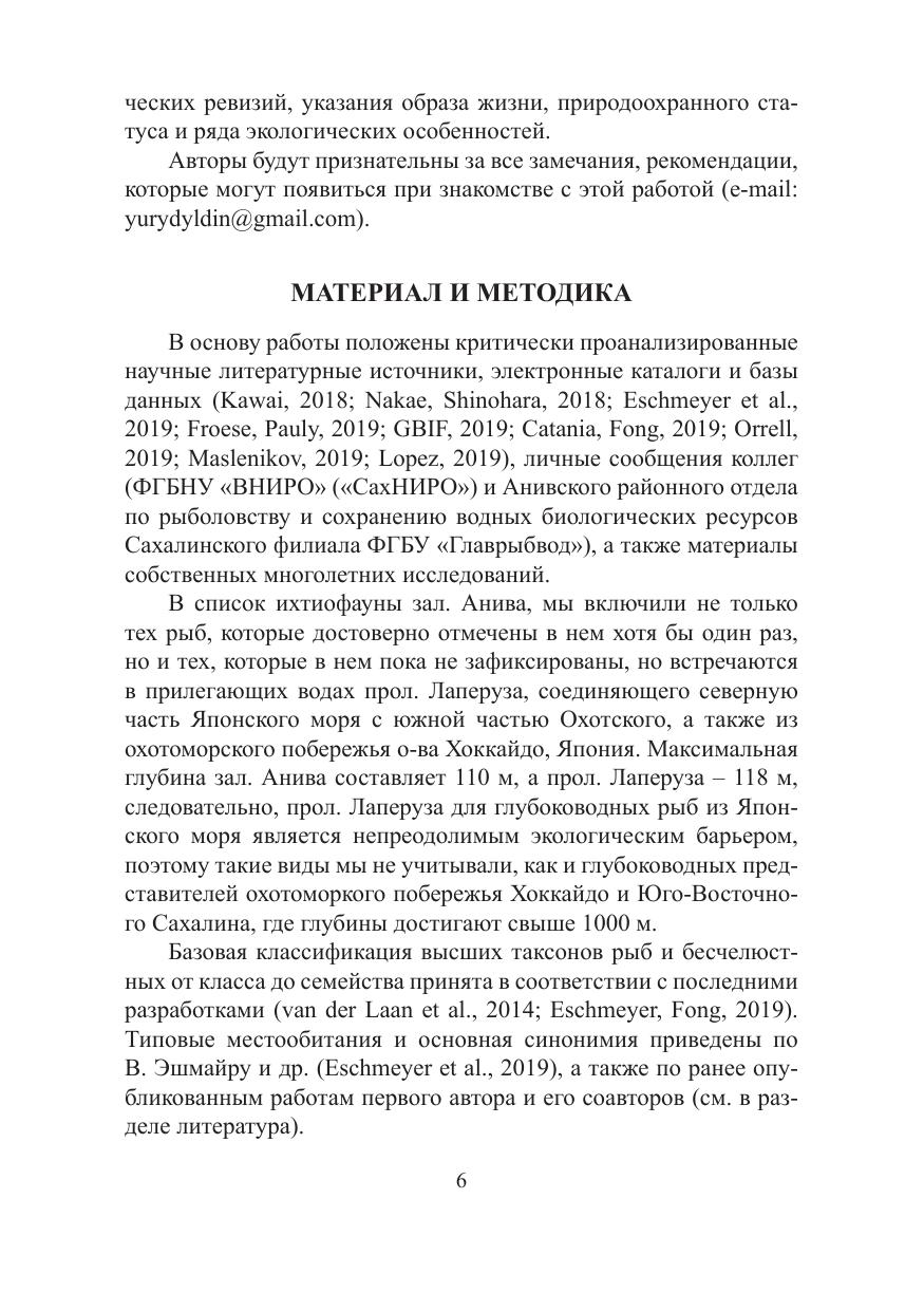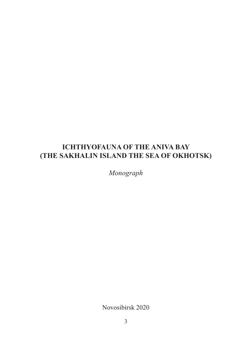 В монографии представлена морская и солоноватая ихтиофауна залива Анива (южная часть Охотского моря, южная часть острова Сахалин), отмеченная за последние 200 лет, включающая в себя 274 вида, в 3 классах, 22 отрядах, 67 семействах и 161 родах. Обсуждается ряд проблемных таксонов и синонимия для каждого отдельного вида. Уточняются и принимаются современные достижения систематики за последние несколько десятков лет. Для ряда видов приводятся сведения о коллекционных экземплярах, подтверждающие их присутствие в пределах изучаемой акватории. Для каждого вида приводятся латинское и английское названия, таксономические замечания, сведения об образе жизни, распространении, природоохранном статусе, экологии, обилии и промысловом значении. Приведена полная система классификации высших таксонов и видов согласно общепринятым международным достижениям. Дана информация об истории изучения ихтиофауны залива и ее общий таксономический обзор, физико-географическая характеристика залива, сведения о коммерческом промысле и природоохранном статусе, а также зоогеографическая характеристика. Книга адресована широкому кругу специалистов и любителей природы, биологам-систематикам, ихтиологам, экологам, специалистам в области сохранения биологического разнообразия и рыбного хозяйства, биогеографам, сотрудникам высших учебных заведений биологического направления, работникам музеев, а также студентам специализированных кафедр и институтов.