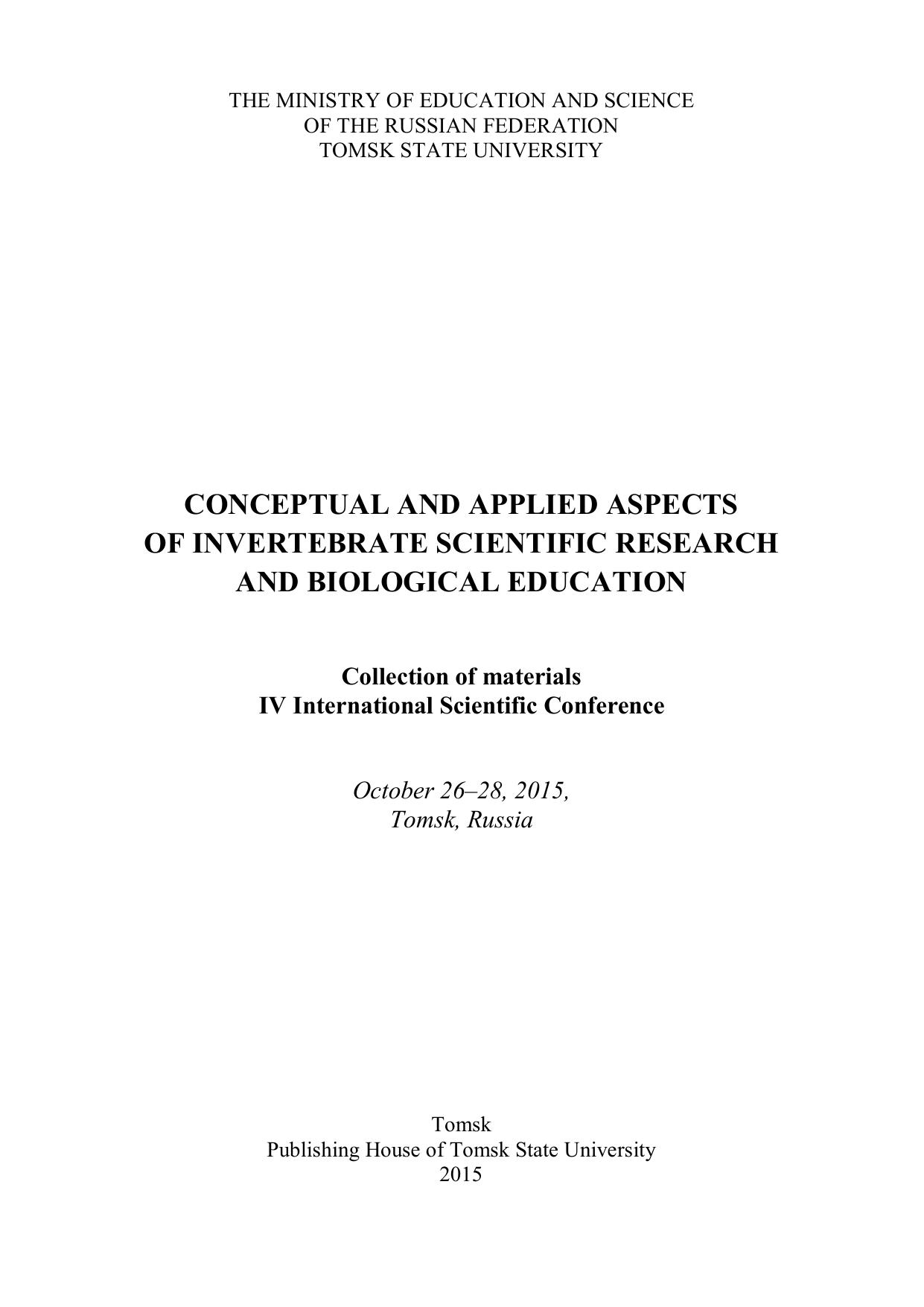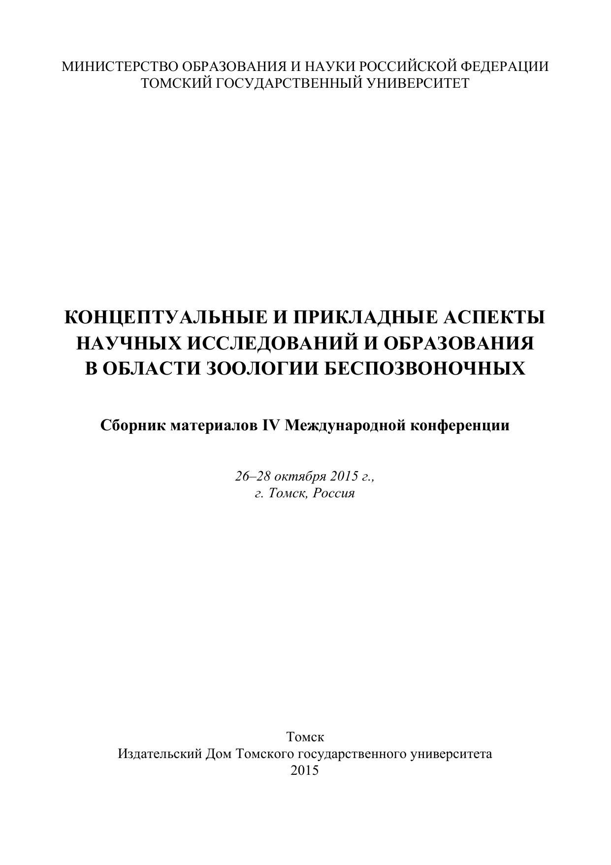 Концептуальные и прикладные аспекты научных исследований и образования в области зоологии беспозвоночных