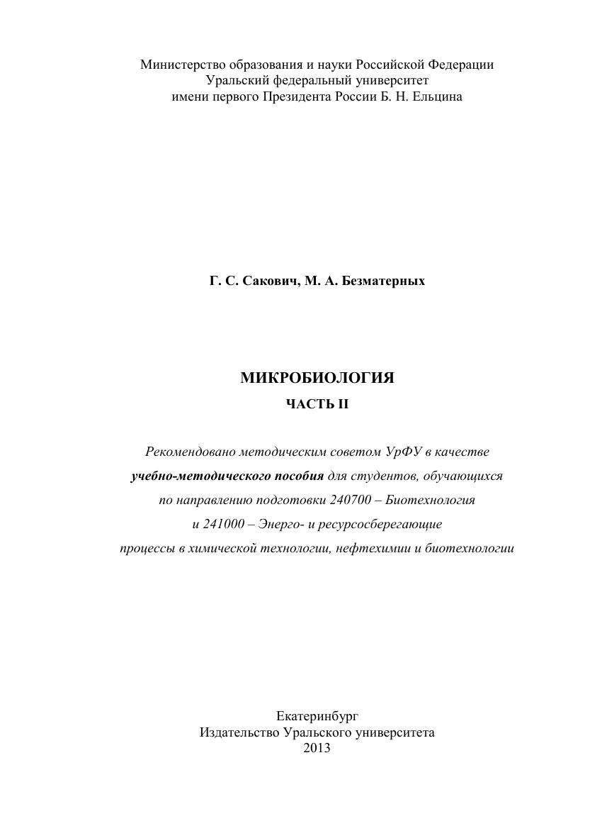 Учебно-методическое пособие по дисциплинам «Общая биология и микробиология», «Основы микробиологии и биотехнологии», «Методы получения промышленных штаммов микроорганизмов», «Основы асептики микробиологических производств», «Культивирование промышленных штаммов микроорганизмов», «Микробиологические аспекты биотехнологических производств» предназначено для студентов всех форм обучения по направлениям подготовки бакалавриата и магистратуры 240700 – Биотехнология и 241000 – Энергои ресурсосберегающие процессы в химической технологии, нефтехимии и биотехнологии. Часть II пособия включает 11 занятий курса (с 8 по 18) и указания к проведению практических работ с изложением основных сведений об объектах исследования.