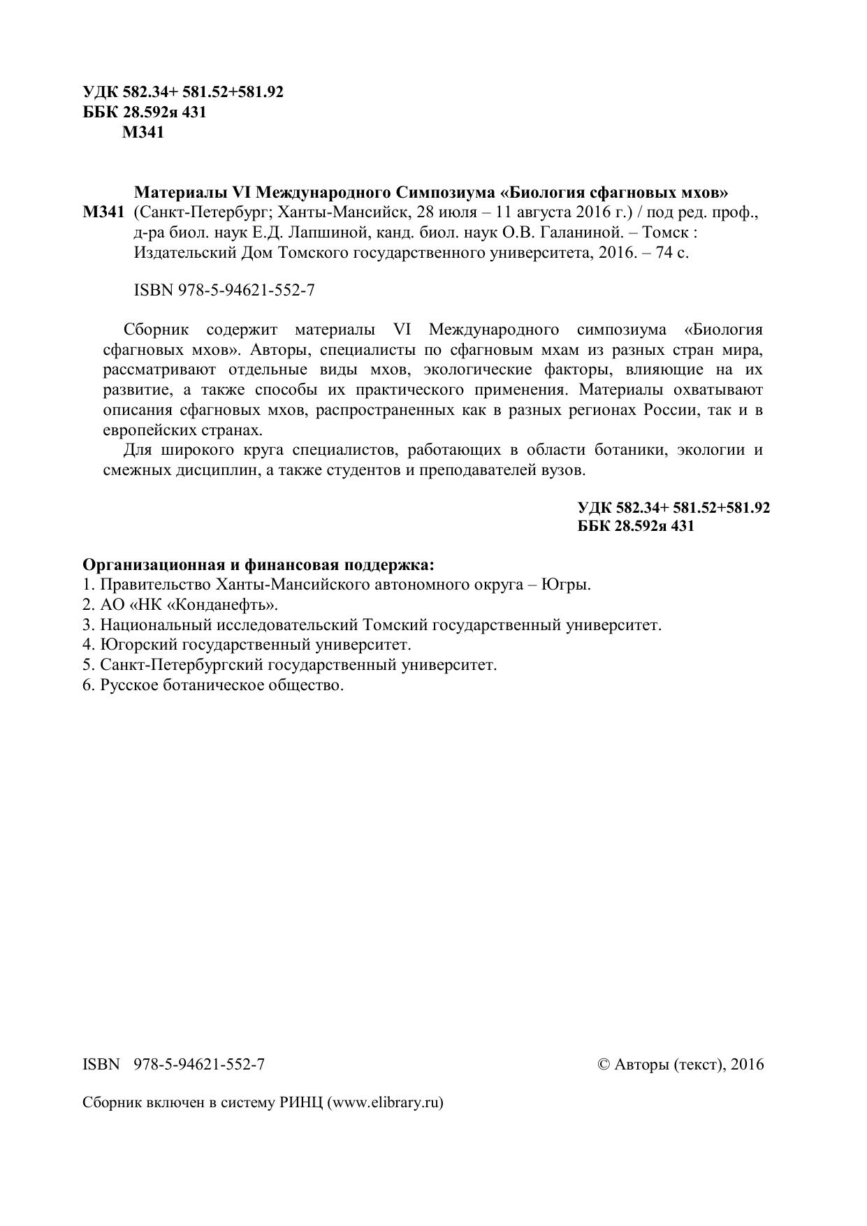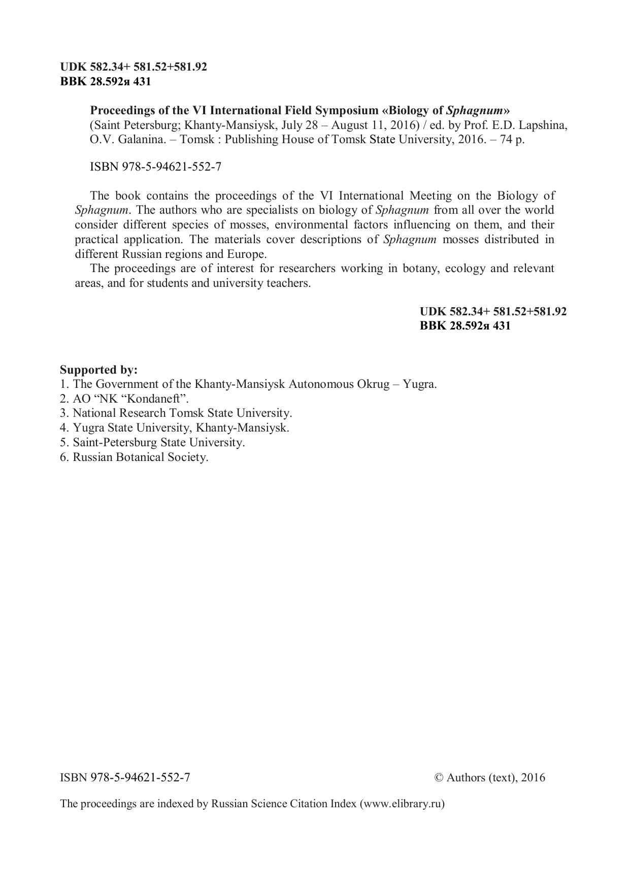 Сборник содержит материалы VI Международного симпозиума «Биология сфагновых мхов». Авторы, специалисты по сфагновым мхам из разных стран мира, рассматривают отдельные виды мхов, экологические факторы, влияющие на их развитие, а также способы их практического применения. Материалы охватывают описания сфагновых мхов, распространенных как в разных регионах России, так и в европейских странах. Для широкого круга специалистов, работающих в области ботаники, экологии и смежных дисциплин, а также студентов и преподавателей вузов.