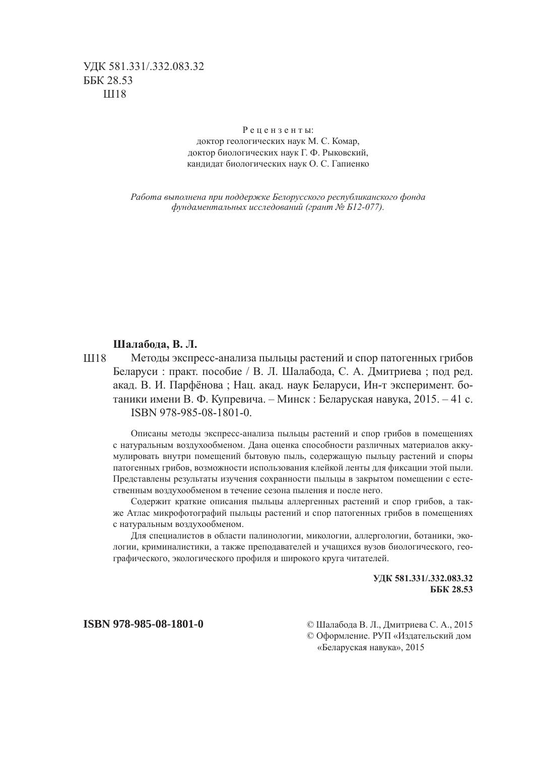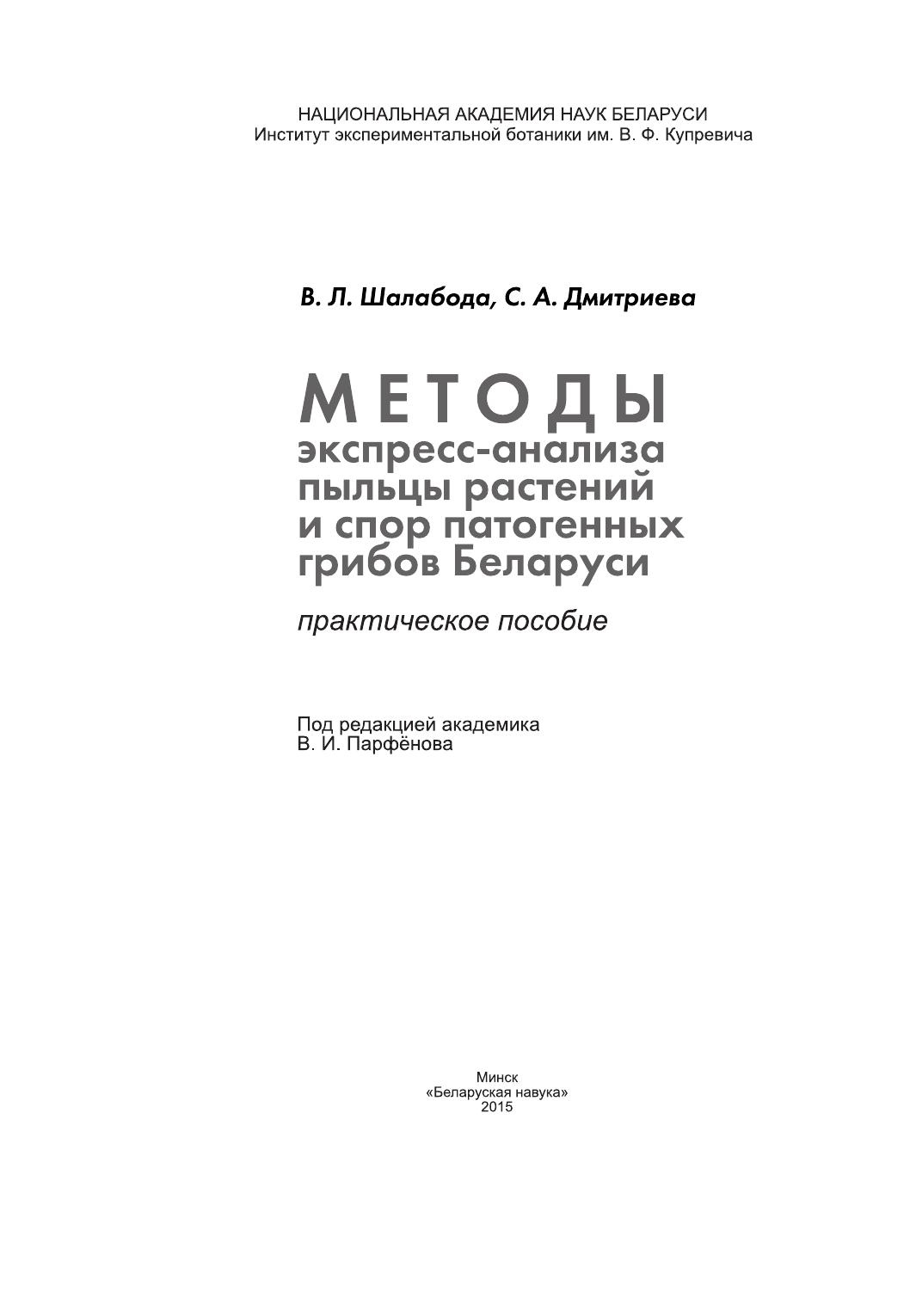 Методы экспресс-анализа пыльцы растений и спор патогенных грибов Беларуси