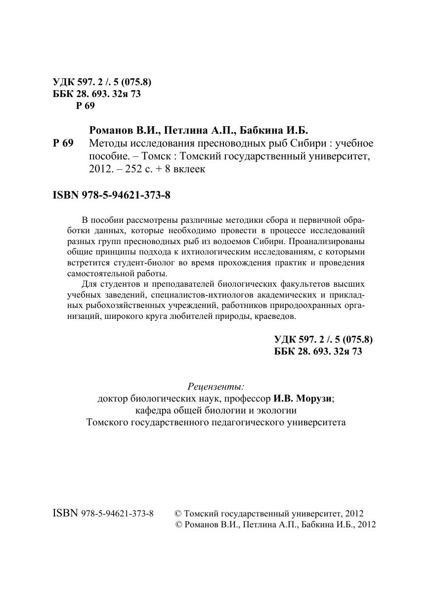 В пособии рассмотрены различные методики сбора и первичной обработки данных, которые необходимо провести в процессе исследований разных групп пресноводных рыб из водоемов Сибири. Проанализированы общие принципы подхода к ихтиологическим исследованиям, с которыми встретится студент-биолог во время прохождения практик и проведения самостоятельной работы. Для студентов и преподавателей биологических факультетов высших учебных заведений, специалистов-ихтиологов академических и прикладных рыбохозяйственных учреждений, работников природоохранных организаций, широкого круга любителей природы, краеведов.