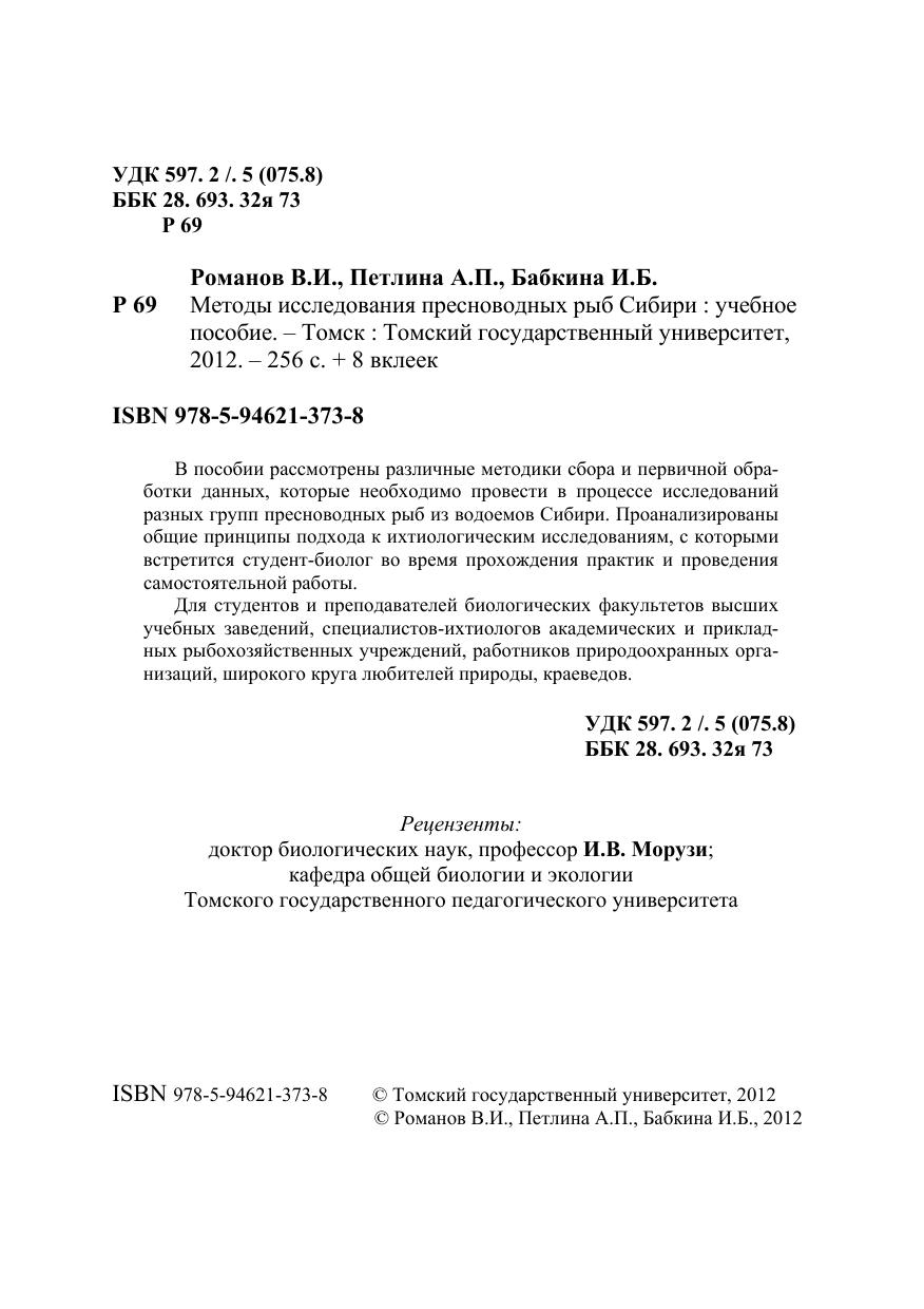 В пособии рассмотрены различные методики сбора и первичной обработки данных, которые необходимо провести в процессе исследований разных групп пресноводных рыб из водоемов Сибири. Проанализированы общие принципы подхода к ихтиологическим исследованиям, с которыми встретится студент-биолог во время прохождения практик и проведения самостоятельной работы. Для студентов и преподавателей биологических факультетов высших учебных заведений, специалистов-ихтиологов академических и прикладных рыбохозяйственных учреждений, работников природоохранных организаций, широкого круга любителей природы, краеведов
