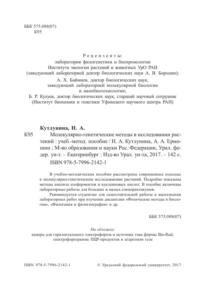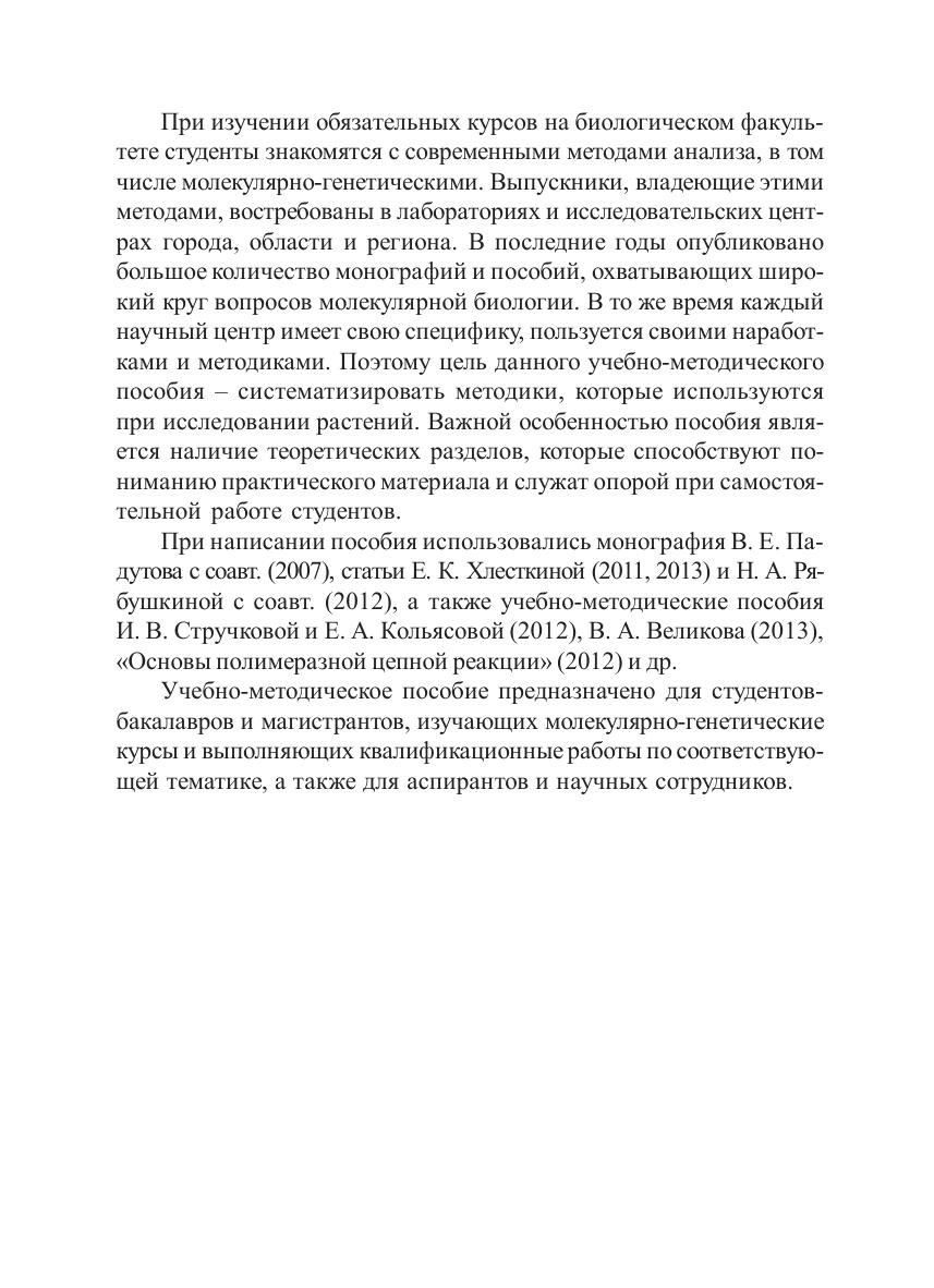 В учебно-методическом пособии рассмотрены современные подходы к молекулярно-генетическим исследованиям растений. Подробно показаны методы анализа изоферментов и нуклеиновых кислот. В пособие включены лабораторные работы для больших и малых спецпрактикумов. Рекомендуется студентам для самостоятельной работы и выполнения лабораторных работ при изучении дисциплин «Физические методы в биологии», «Филогения и филогеография» и др.