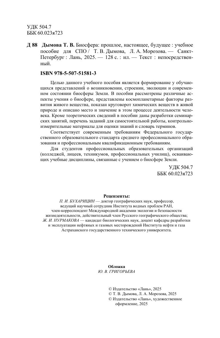 Целью данного учебного пособия является формирование у обучающихся представлений о возникновении, строении, эволюции и современном состоянии биосферы Земли. В пособии рассмотрены различные аспекты учения о биосфере, представлены космопланетарные факторы развития живого вещества, показан круговорот химических веществ в живой природе и описано место и значение в этом процессе деятельности человека. Кроме теоретических сведений в пособии даны разработки семинарских занятий, перечень заданий для самостоятельной работы, контрольно-измерительные материалы для оценки знаний и словарь терминов. Соответствует современным требованиям Федерального государственного образовательного стандарта среднего профессионального образования и профессиональным квалификационным требованиям. Для студентов профессиональных образовательных организаций (колледжей, лицеев, техникумов, профессиональных училищ), осваивающих учебные дисциплины, связанные с учением о биосфере Земли.