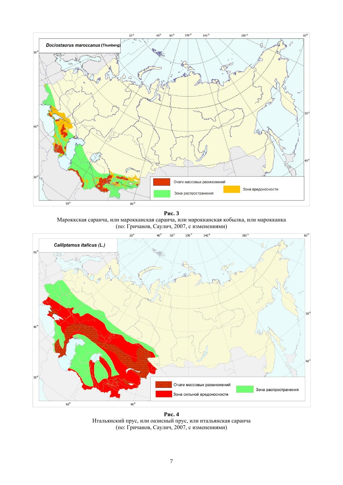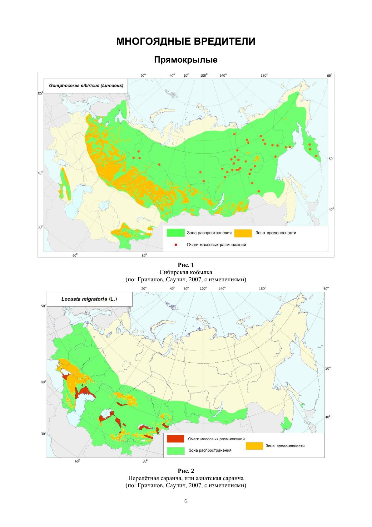 Распространение и зоны вредоносности фитофагов основных сельскохозяйственных культур