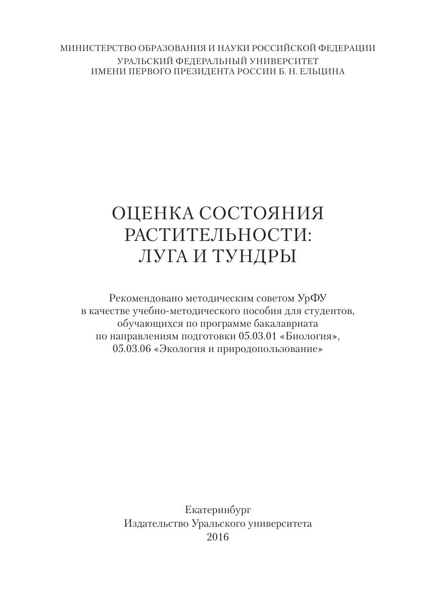 Оценка состояния растительности: луга и тундры : учеб.метод. пособие