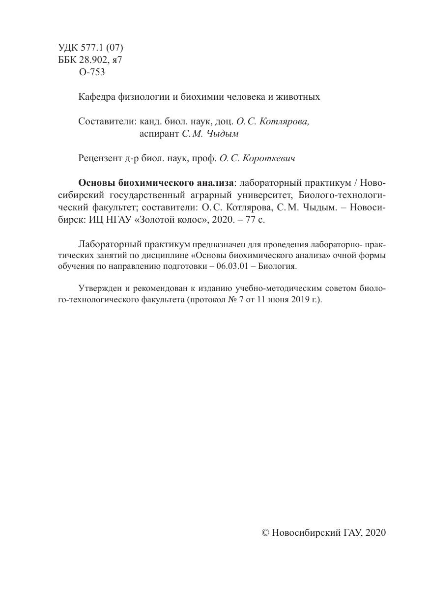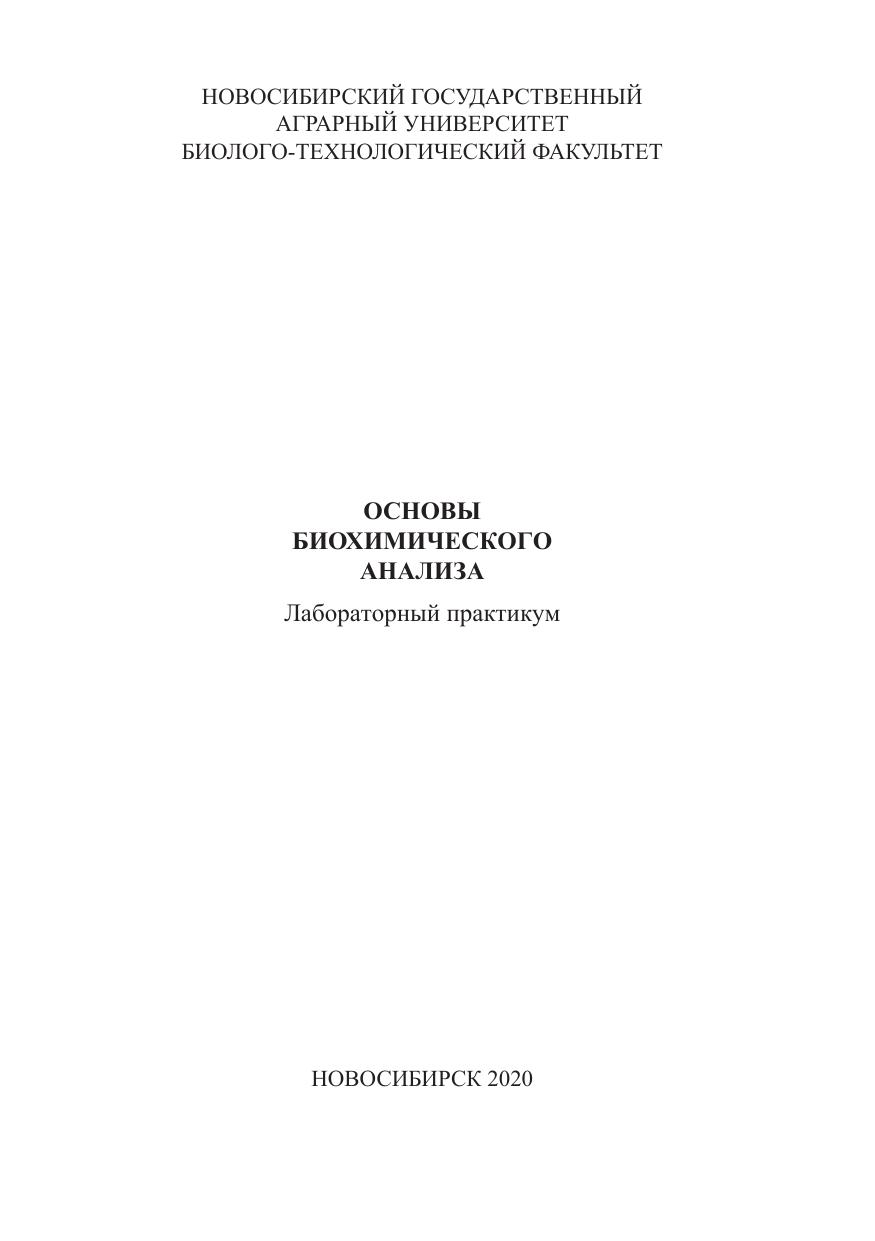 Лабораторный практикум предназначен для проведения лабораторно- практических занятий по дисциплине «Основы биохимического анализа» очной формы обучения по направлению подготовки – 06.03.01 – Биология.