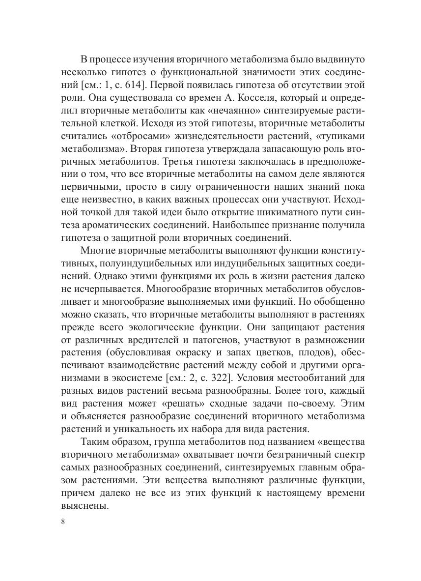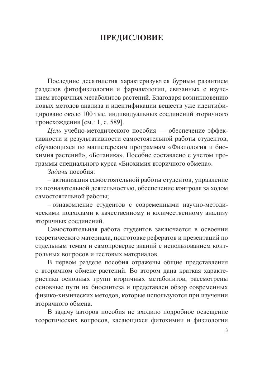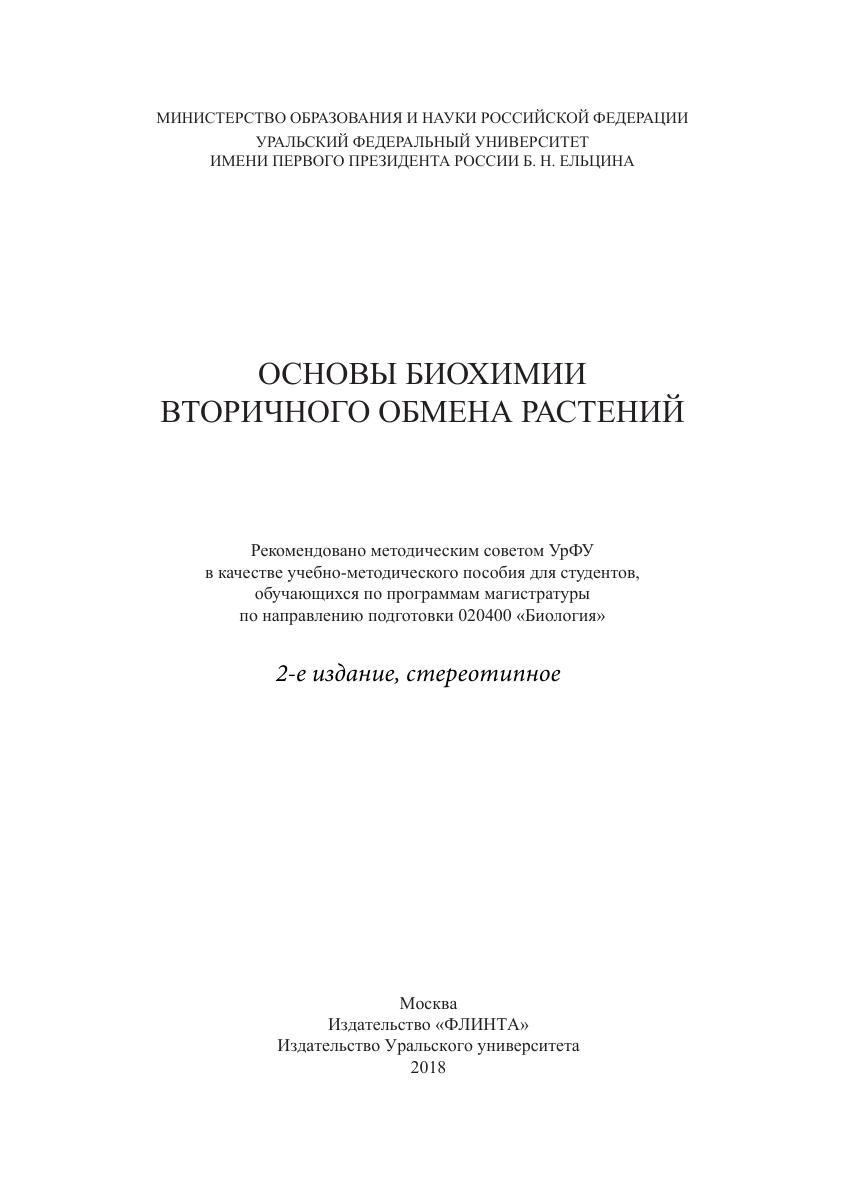 В учебно-методическом пособии показаны пути биосинтеза основных групп вторичных метаболитов растений. Отражены современные методические подходы к качественному и количественному определению вторичных метаболитов. Пособие будет полезно студентам-магистрантам при выполнении блока лабораторно-практических занятий в рамках специальных курсов, а также аспирантам при проведении экспериментальных исследований.