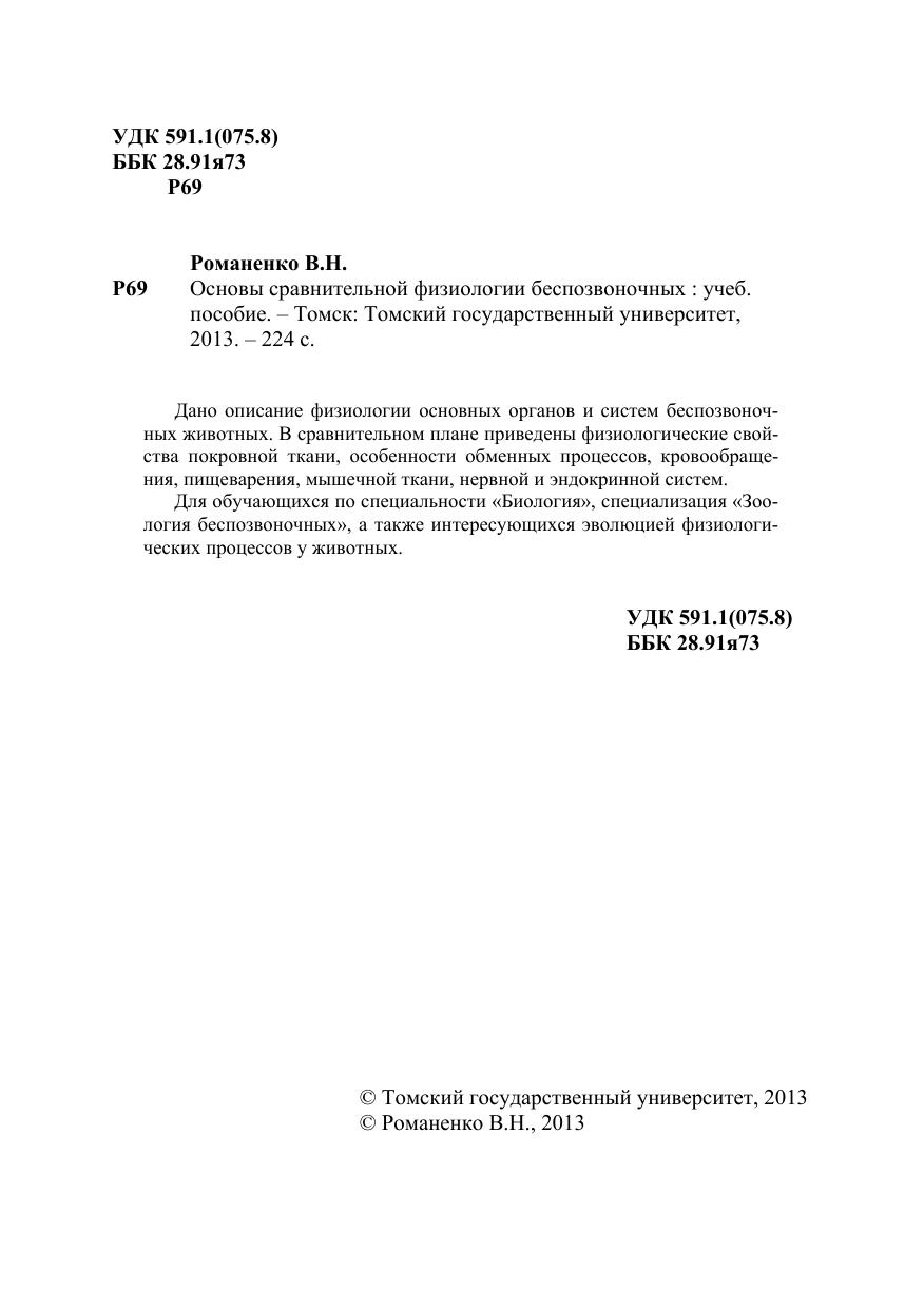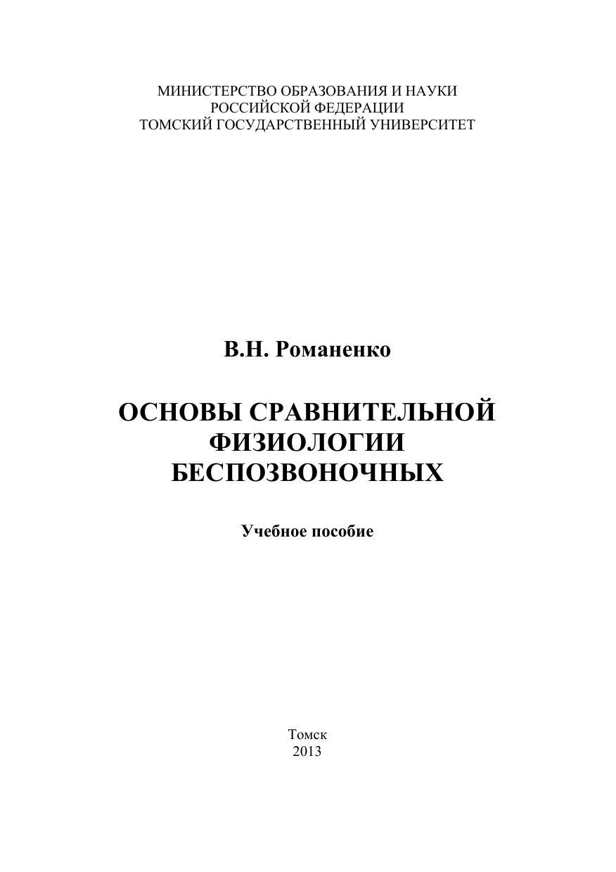 Основы сравнительной физиологии беспозвоночных
