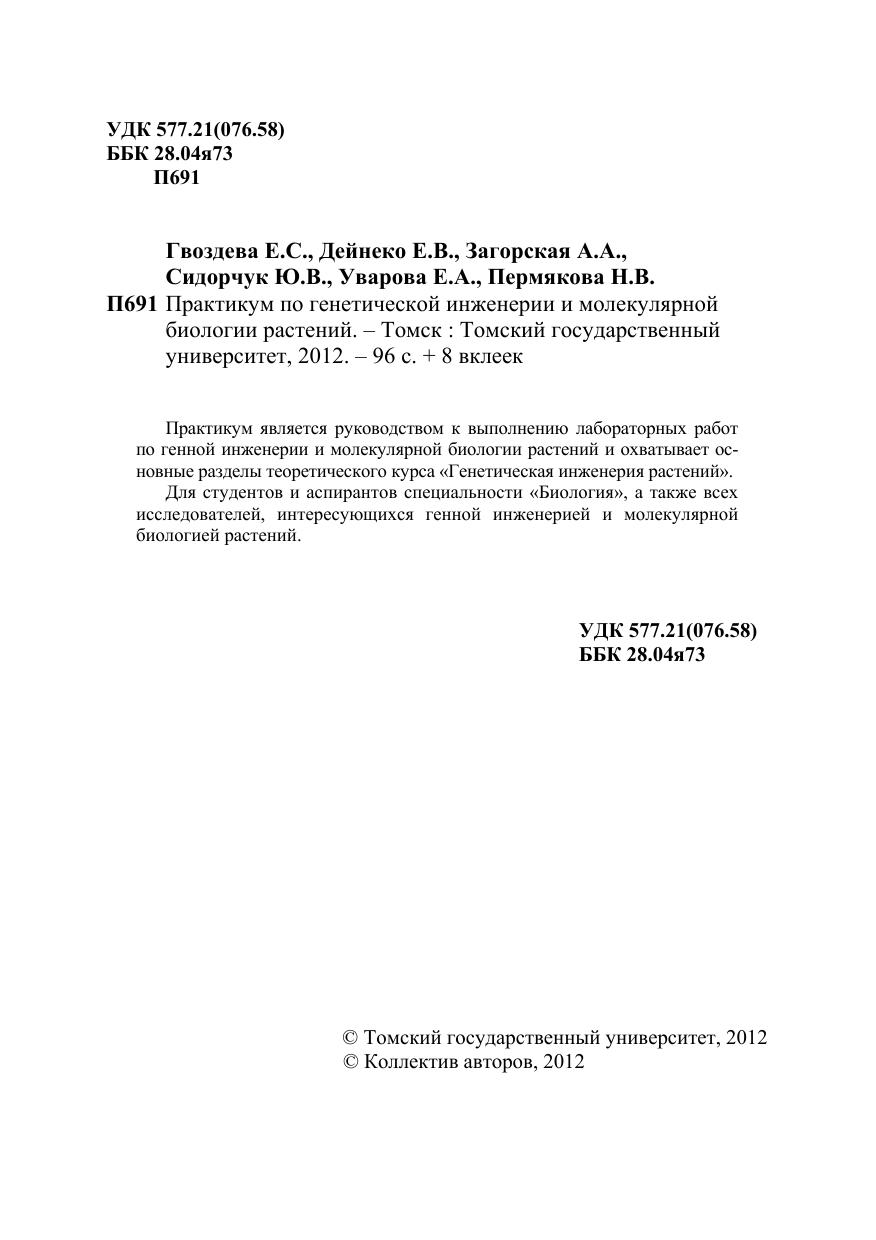 Практикум является руководством к выполнению лабораторных работ по генной инженерии и молекулярной биологии растений и охватывает основные разделы теоретического курса «Генетическая инженерия растений». Для студентов и аспирантов специальности «Биология», а также всех исследователей, интересующихся генной инженерией и молекулярной биологией растений.