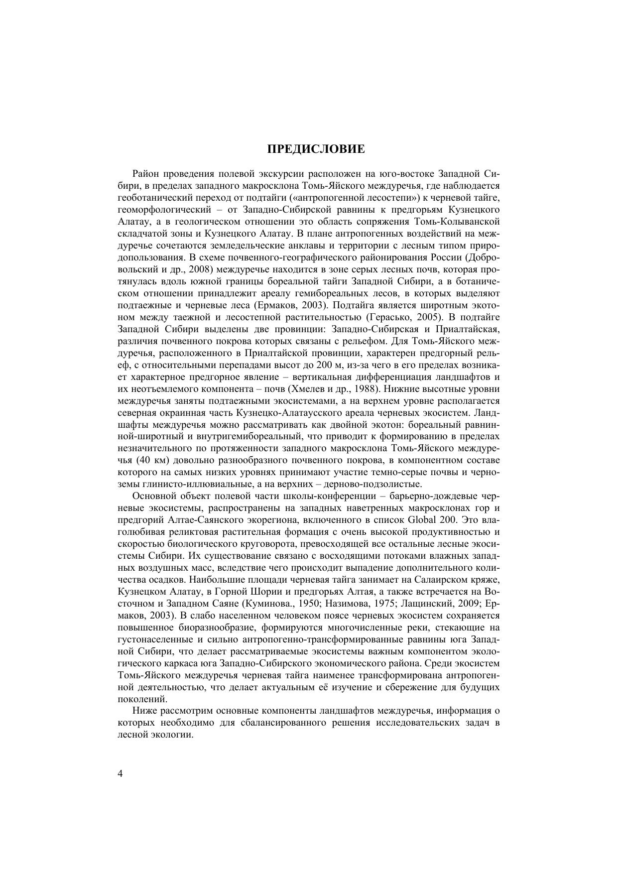 Настоящее издание представляет собой краткую характеристику различных компонентов ландшафта на основе как литературных данных, так и собственных наблюдений и исследований. Ключевым этапом школы-конференции являются полевые экскурсии, которые будут проводиться в окрестностях г. Томска, где расположена северная часть ареала уникальных черневых экосистем с богатой флорой и почвенной фауной и своеобразными сверхглубокоосветленными почвами, имеющими довольно мощный профиль. Большой интерес представляет то, что именно с западного макросклона Томь-Яйского междуречья началось земледельческое освоение русскими переселенцами юго-востока Западной Сибири. Для студентов, изучающих различные компоненты ландшафтов бассейна нижней Томи, а также всех интересующихся природой Томского края