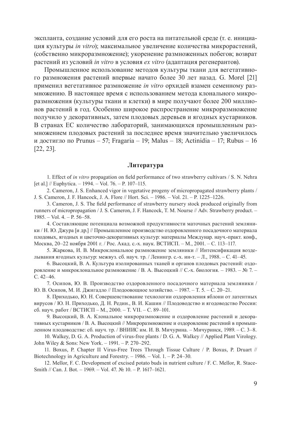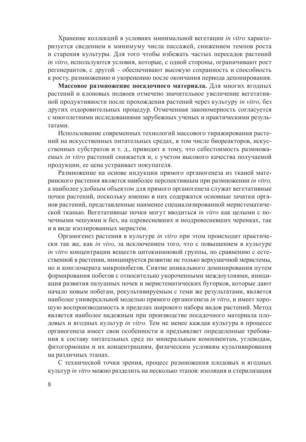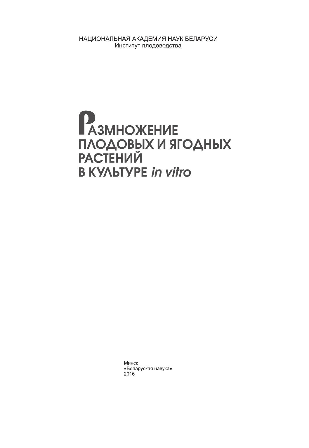 В монографии обобщены результаты многолетних исследований по размножению в культуре in vitro сортов и подвоев плодовых и ягодных культур, выращиваемых в Беларуси. Изложены общие вопросы работ со стерильной культурой растений и особенности выращивания in vitro конкретных генотипов яблони, груши, вишни, сливы, смородины черной и красной, крыжовника, малины летней и ремонтантной, ежевики, земляники садовой, голубики, брусники, клюквы, рябины, аронии черноплодной. Предназначена для специалистов сельского хозяйства, преподавателей и студентов вузов.