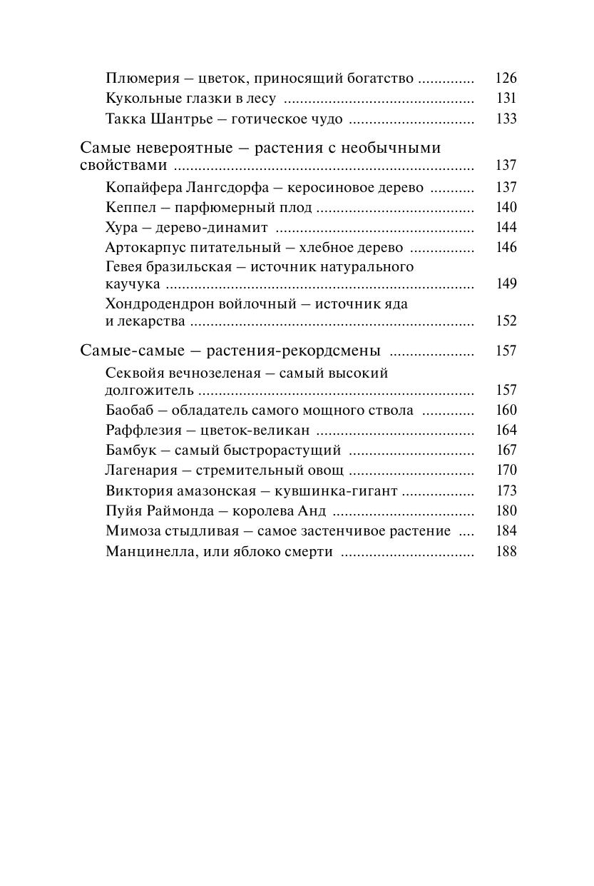 Мир флоры велик и разнообразен, его представители населяют все уголки земного шара – даже суровую Антарктиду и засушливую Сахару. При взгляде на одни растения трудно скрыть отвращение, а от других невозможно отвести глаз. Плоды некоторых деревьев настолько редки, что по стоимости сопоставимы с ювелирными украшениями. А порой и самые привычные нам травы и кустарники оказываются на поверку необычайно интересными. Книга рассказывает о самых удивительных растениях мира – красивых и уродливых, полезных и опасных, вкусных и ядовитых. Издание адресовано всем, кто интересуется ботаникой и кому небезразлично будущее окружающей нас природы