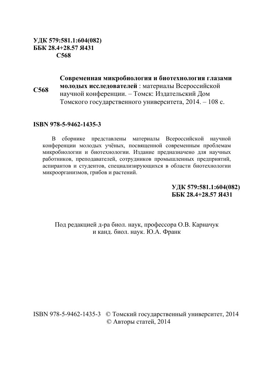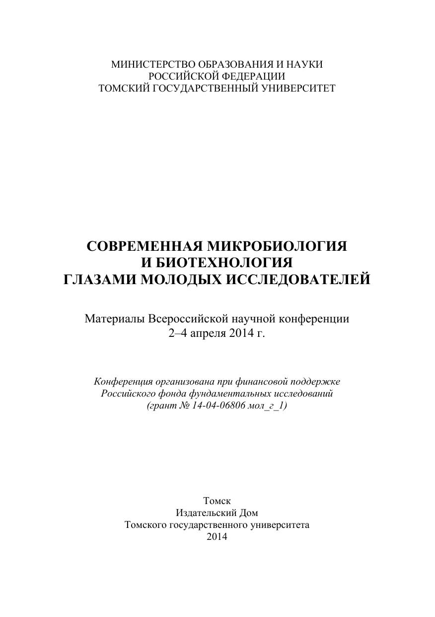 В сборнике представлены материалы Всероссийской научной конференции молодых учёных, посвященной современным проблемам микробиологии и биотехнологии. Издание предназначено для научных работников, преподавателей, сотрудников промышленных предприятий, аспирантов и студентов, специализирующихся в области биотехнологии микроорганизмов, грибов и растений.
