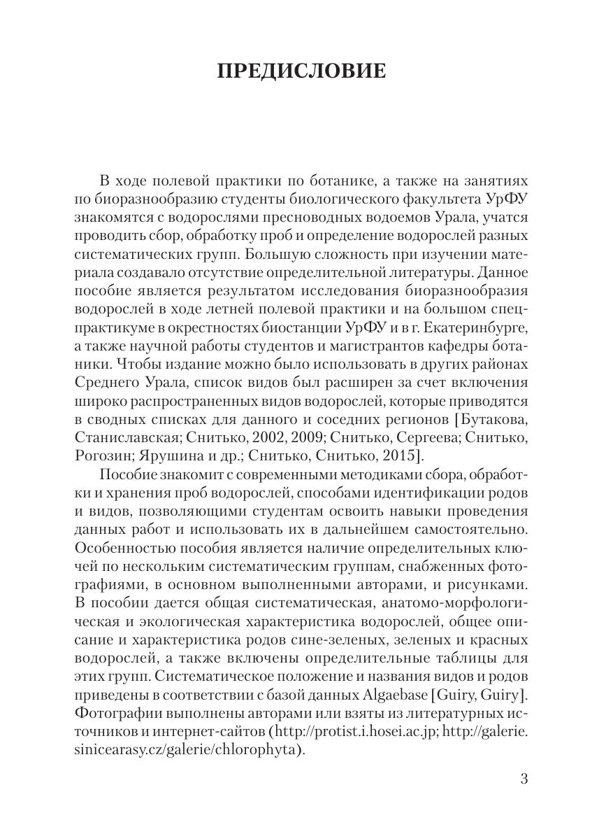 В учебно-методическом пособии содержится информация о разнообразии, особенностях строения, экологии и систематике водорослей, а также методика сбора и обработки проб водорослей пресноводных водоемов. Приводится характеристика цианобактерий, красных, глаукофитовых, зеленых и харовых водорослей. Даны описания 141 рода водорослей, включающие их анатомо-морфологическую и экологическую характеристику. Приведены диагностические ключи для определения водорослей окрестностей биологической станции УрФУ.