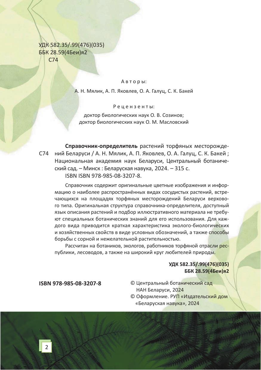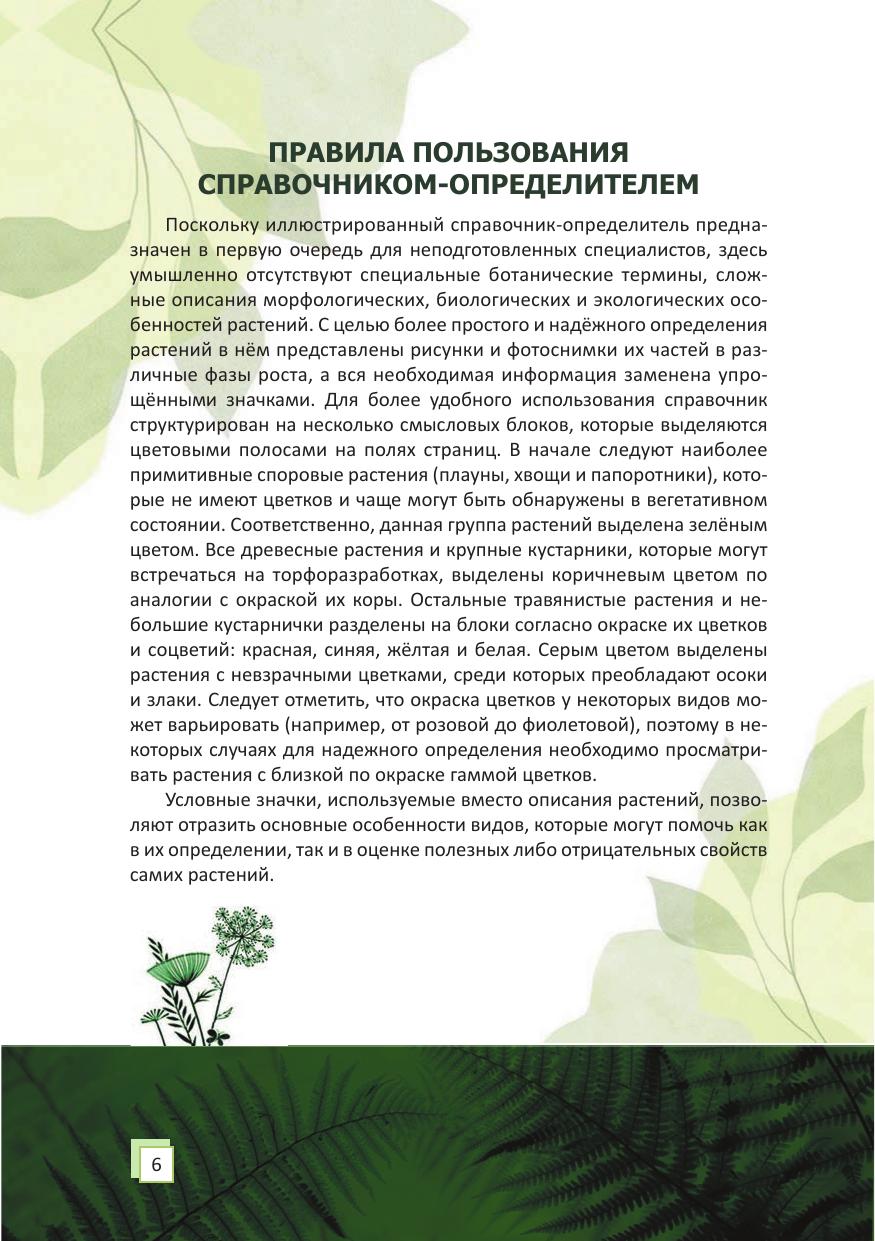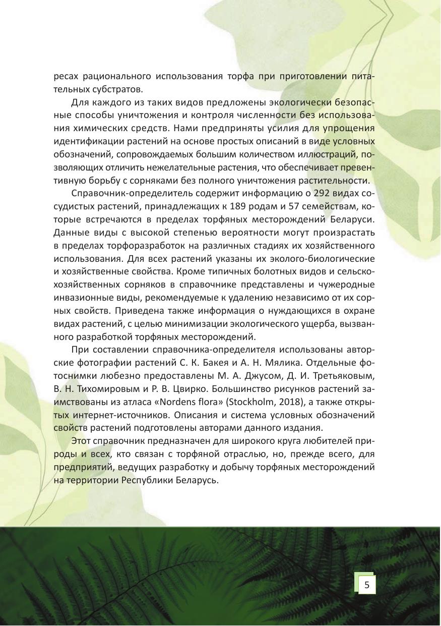 и хозяйственных свойств в виде условных обозначений, а также способы борьбы с сорной и нежелательной растительностью. Рассчитан на ботаников, экологов, работников торфяной отрасли республики, лесоводов, а также на широкий круг любителей природы.