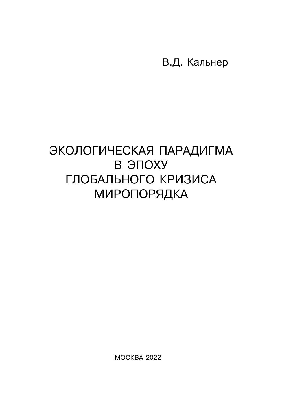Экологическая парадигма в эпоху глобального кризиса миропорядка