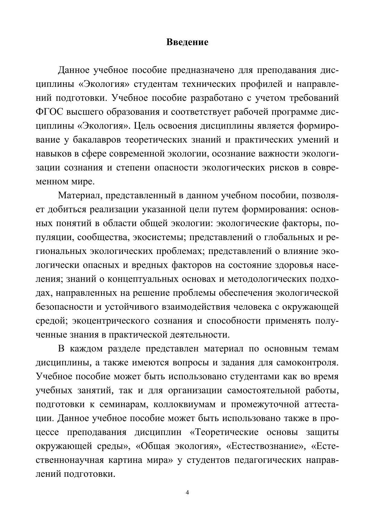 Учебное пособие содержит краткие сведения по основам общей экологии, а также раскрывает причины и последствия антропогенной деградации окружающей среды и меры по ее охране. Предназначено для студентов технических профилей и направлений подготовки, изучающих дисциплину «Экология».