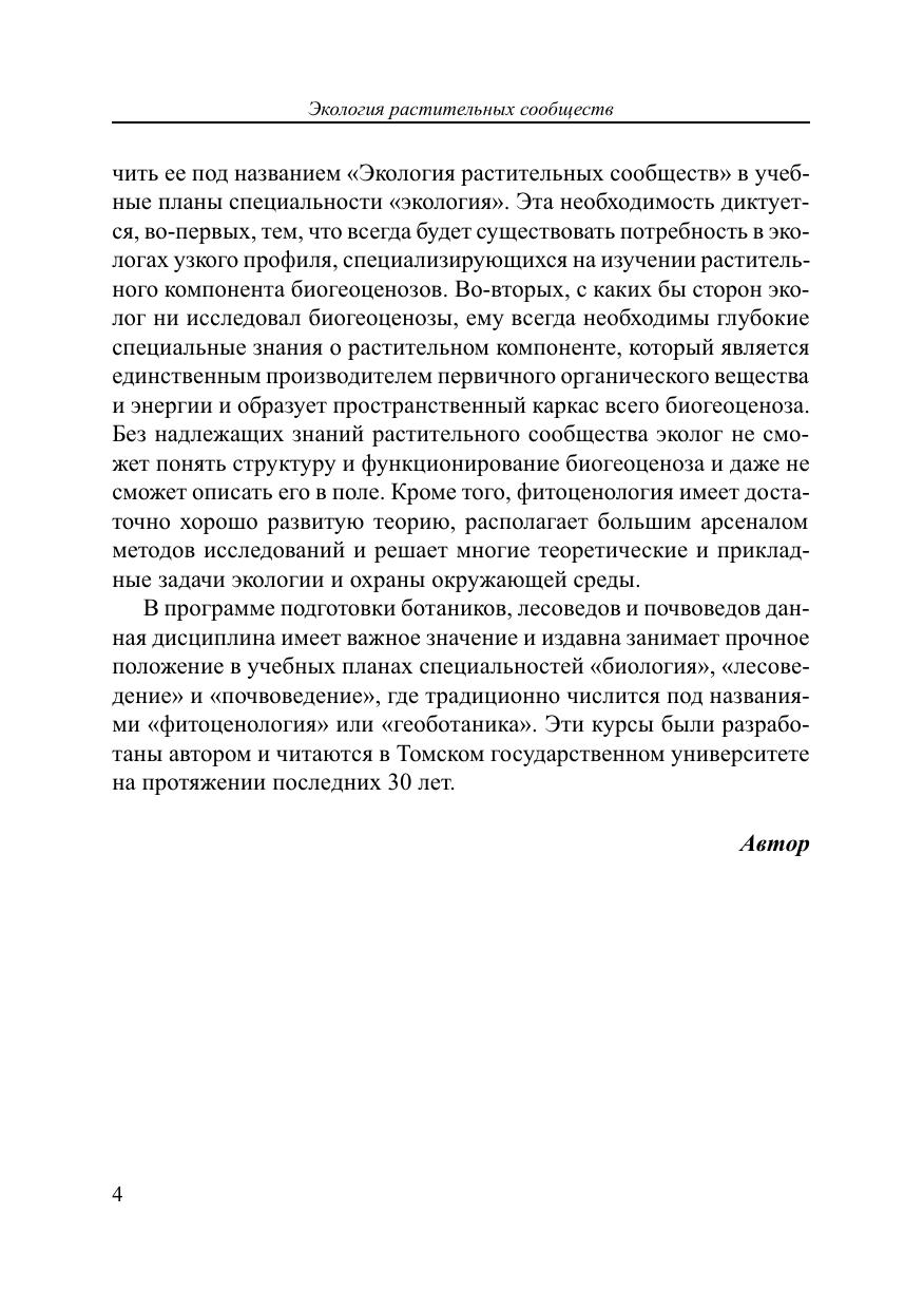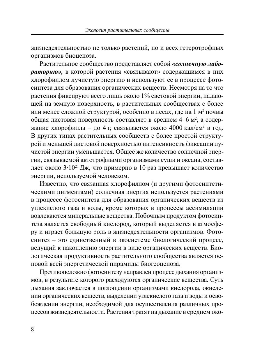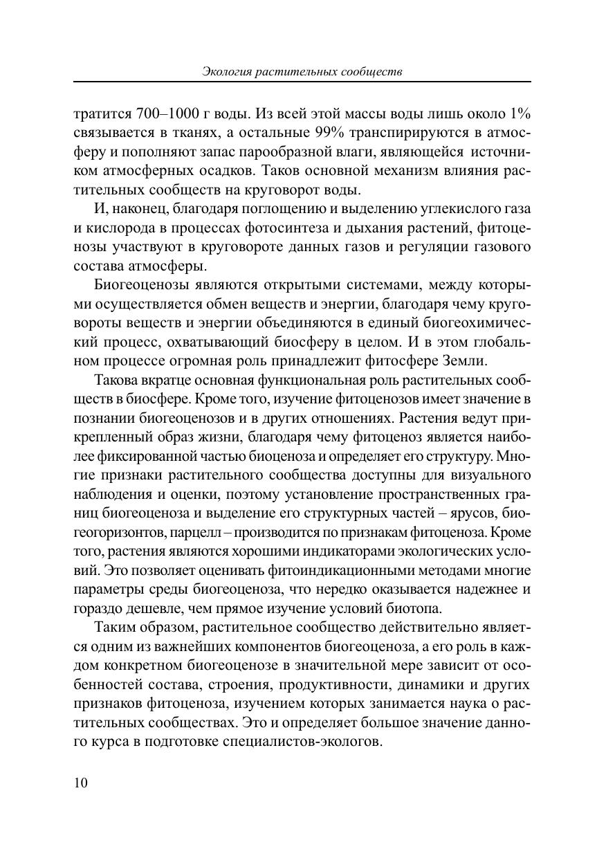 Растительное население, продуцирующее первичное органическое вещество и накапливающее энергию, составляет один из важнейших компонентов конкретных экосистем и биосферы в целом, изучение которого имеет важное значение в разрешении проблем охраны природы и в подготовке специалистов разного профиля. В учебнике дано целостное представление об организации, связи со средой и функционировании растительных сообществ. Достаточно детально рассмотрены вопросы формирования, состава, структуры, продуктивности, динамики и классификации растительных сообществ, а также влияния их на основные факторы среды и формирование местообитаний. Обсуждаются основные закономерности распределения растительных сообществ в пространстве и формирования территориальной структуры растительного покрова в связи с географической и топологической изменчивостью среды. Для студентов-ботаников и экологов. В качестве дополнительного пособия рекомендуется студентам-лесоведам, почвоведам, географам, а в качестве справочника -преподавателям вузов, учителям, сотрудникам государственных экологических служб и природоохранных организаций.