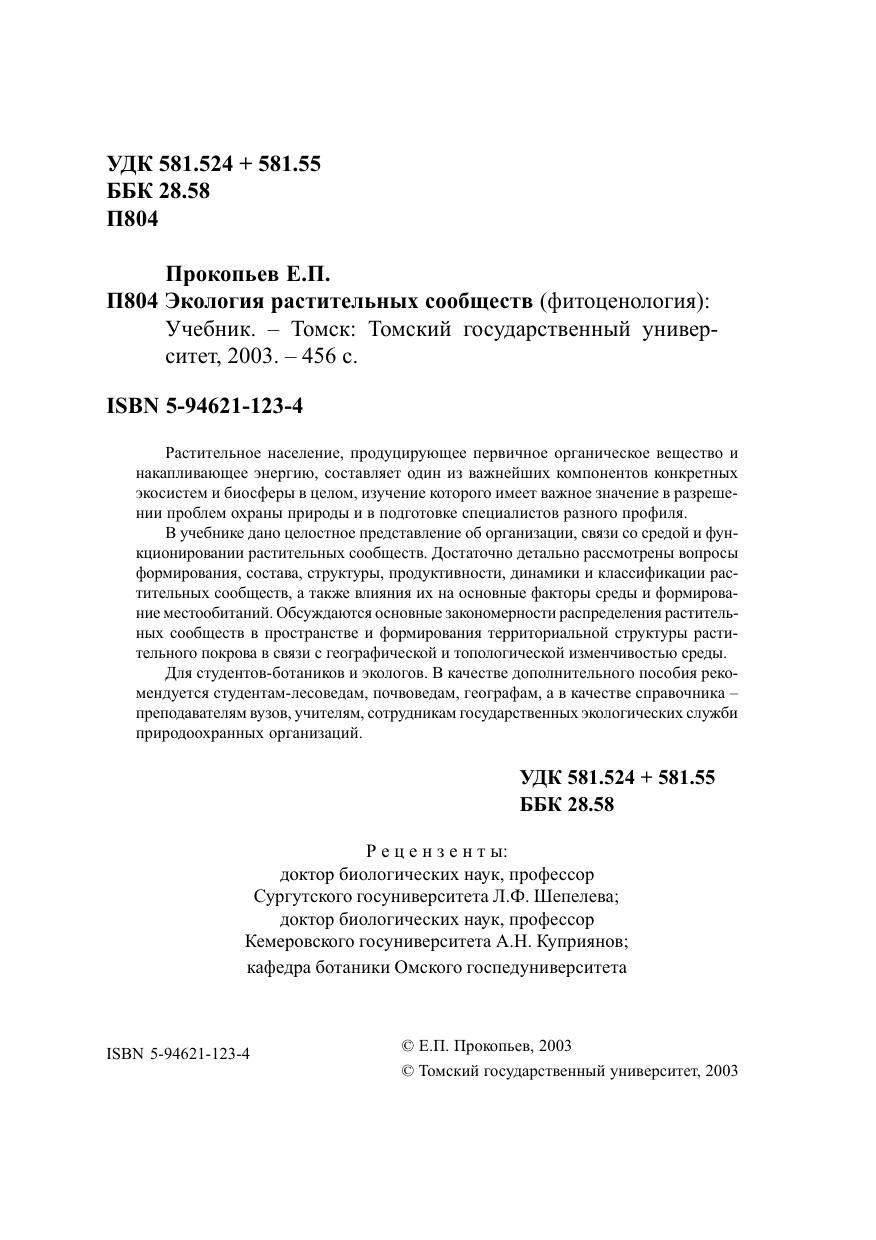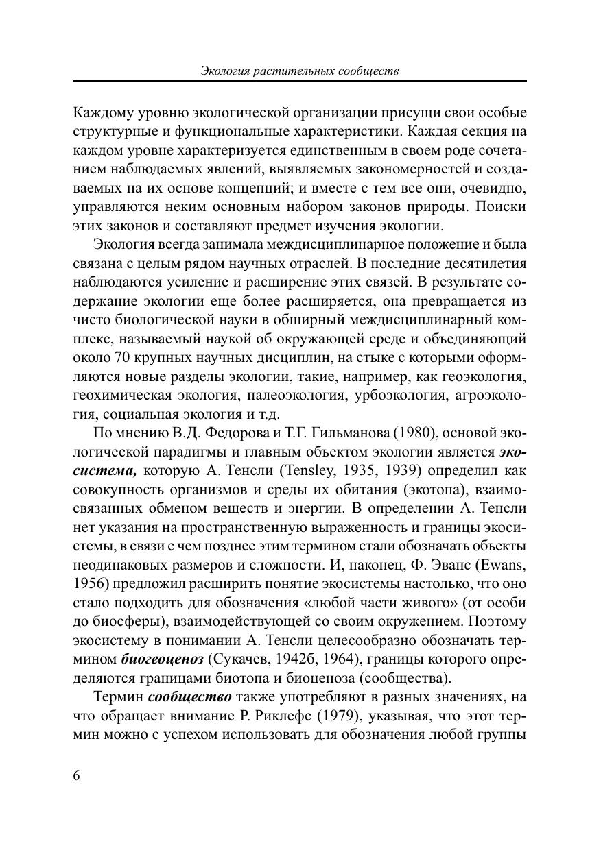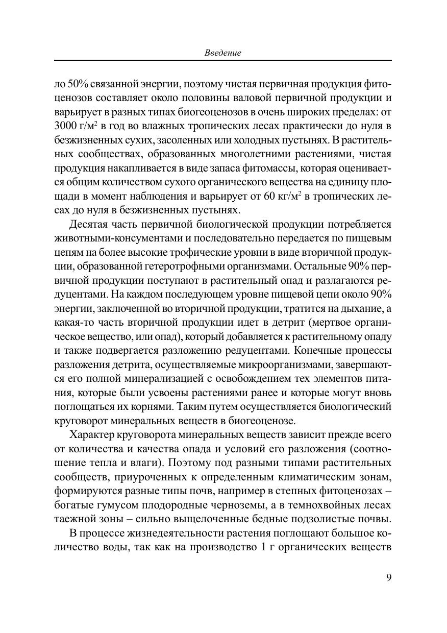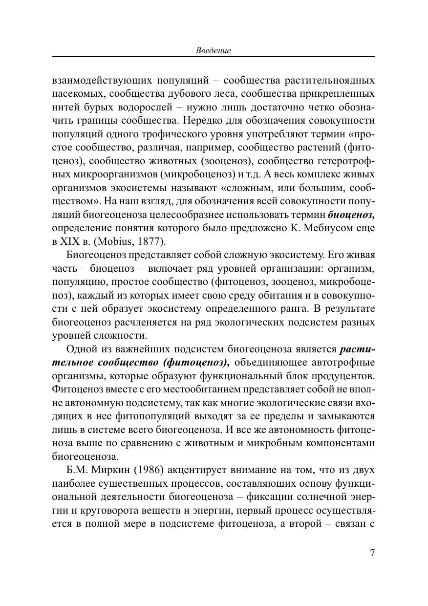 Растительное население, продуцирующее первичное органическое вещество и накапливающее энергию, составляет один из важнейших компонентов конкретных экосистем и биосферы в целом, изучение которого имеет важное значение в разрешении проблем охраны природы и в подготовке специалистов разного профиля. В учебнике дано целостное представление об организации, связи со средой и функционировании растительных сообществ. Достаточно детально рассмотрены вопросы формирования, состава, структуры, продуктивности, динамики и классификации растительных сообществ, а также влияния их на основные факторы среды и формирование местообитаний. Обсуждаются основные закономерности распределения растительных сообществ в пространстве и формирования территориальной структуры растительного покрова в связи с географической и топологической изменчивостью среды. Для студентов-ботаников и экологов. В качестве дополнительного пособия рекомендуется студентам-лесоведам, почвоведам, географам, а в качестве справочника -преподавателям вузов, учителям, сотрудникам государственных экологических служб и природоохранных организаций.