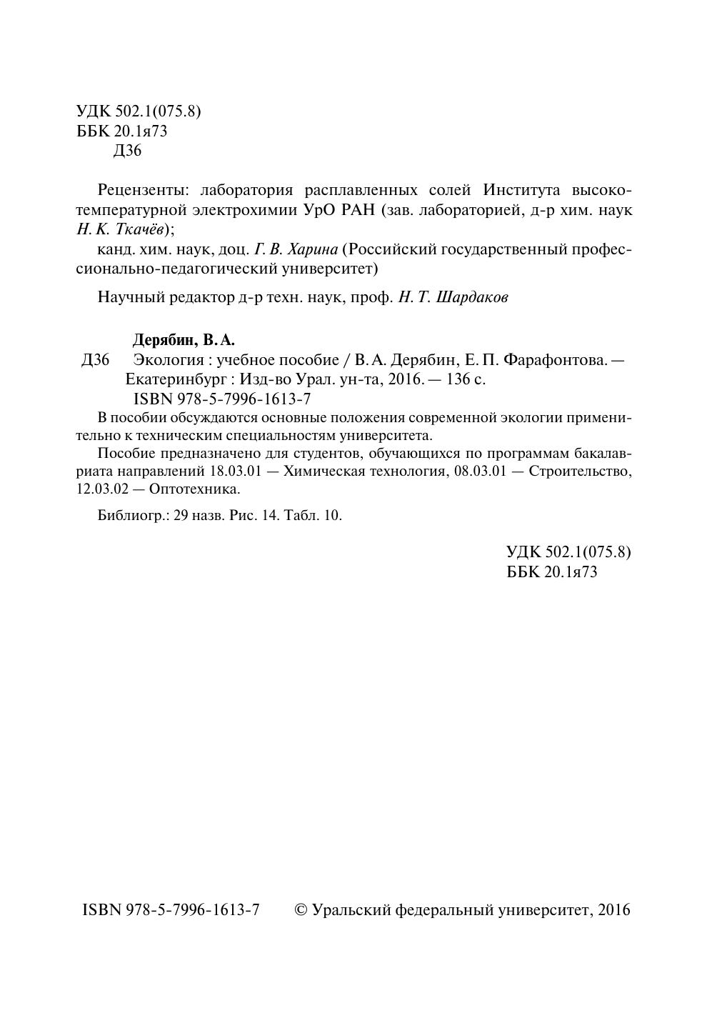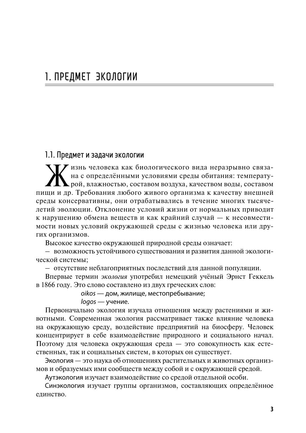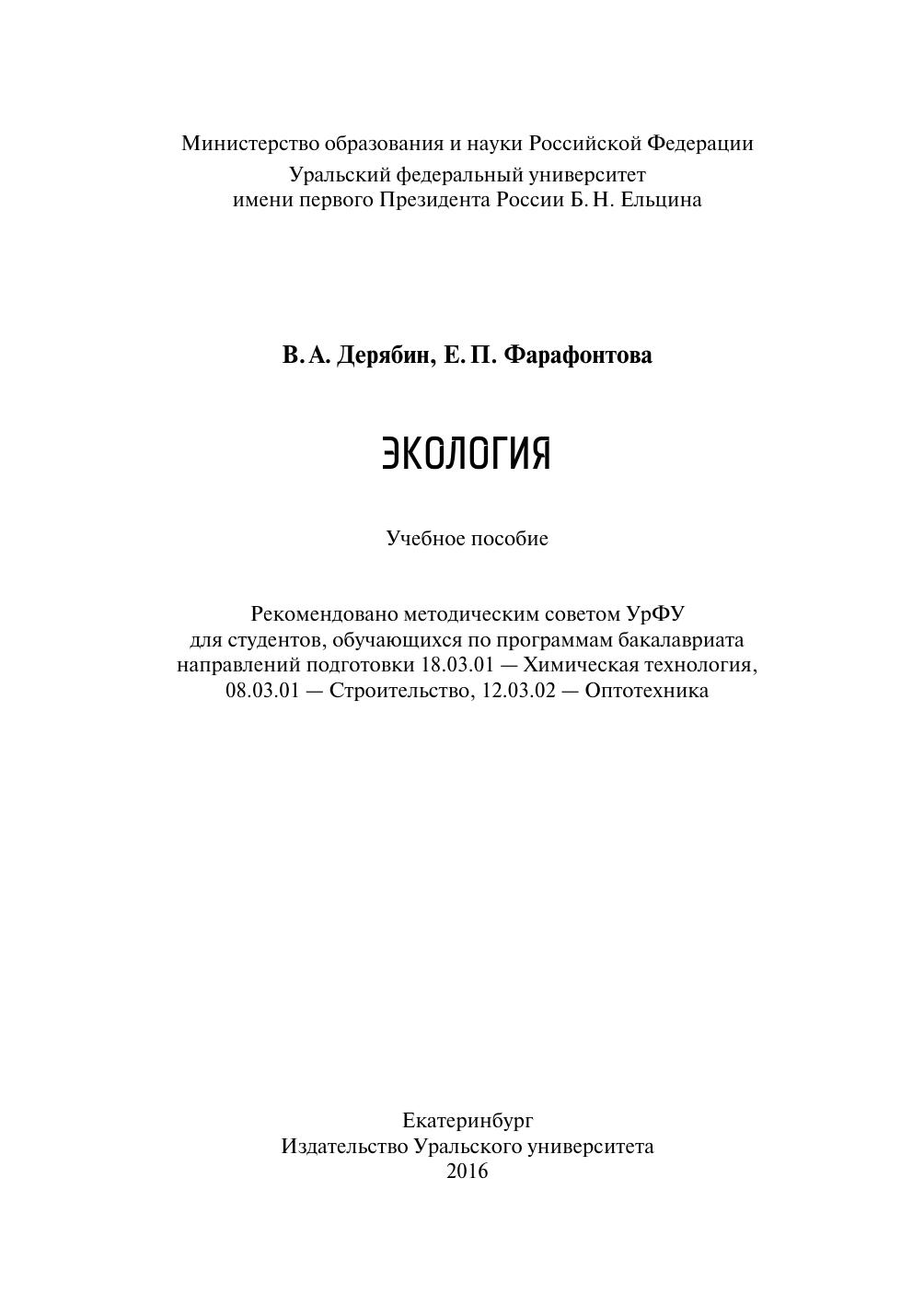 В пособии обсуждаются основные положения современной экологии применительно к техническим специальностям университета. Пособие предназначено для студентов, обучающихся по программам бакалавриата направлений 18.03.01 — Химическая технология, 08.03.01 — Строительство, 12.03.02 — Оптотехника.