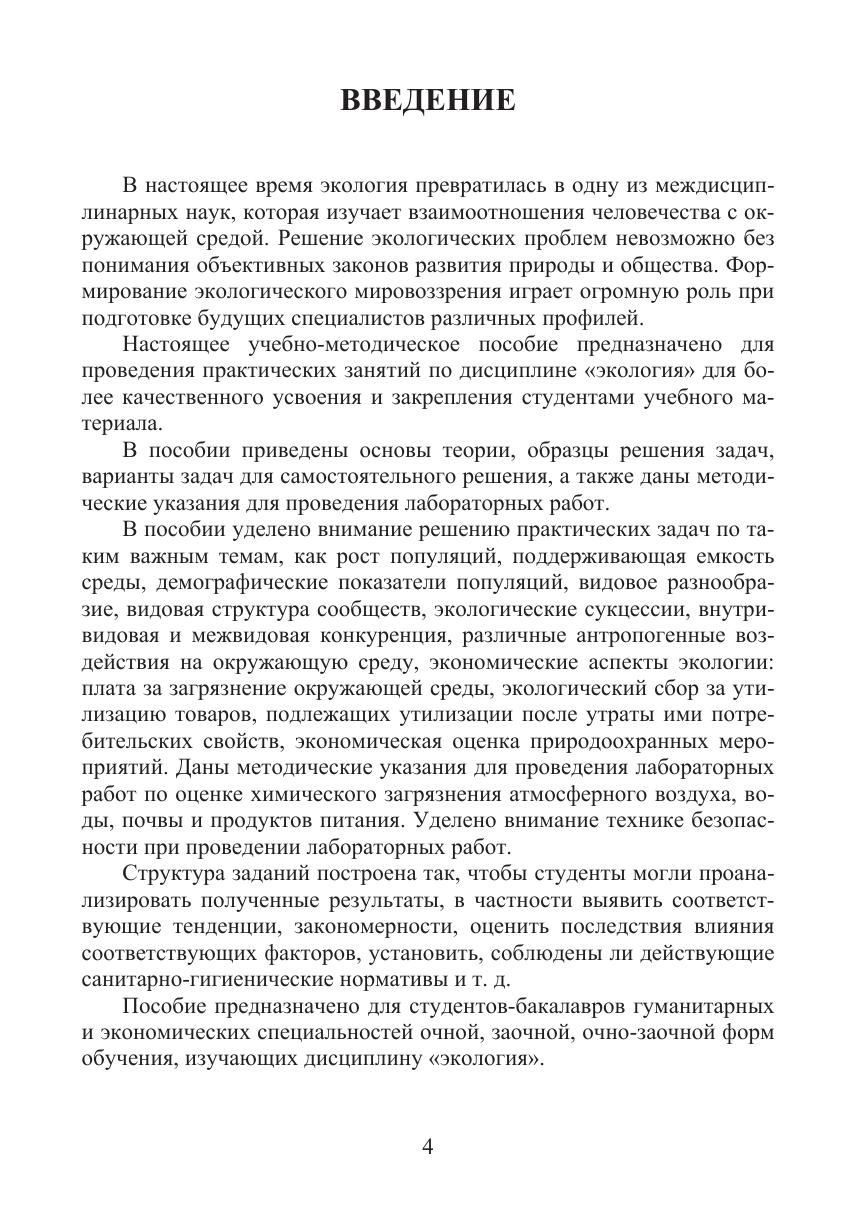 Учебное пособие предназначено для проведения практических занятий по дисциплине «Экология» для более качественного усвоения и закрепления студентами учебного материала. Приведены основы теории, образцы решения задач, варианты задач для самостоятельного решения, а также даны методические указания для проведения лабораторных работ. Пособие предназначено для подготовки бакалавров