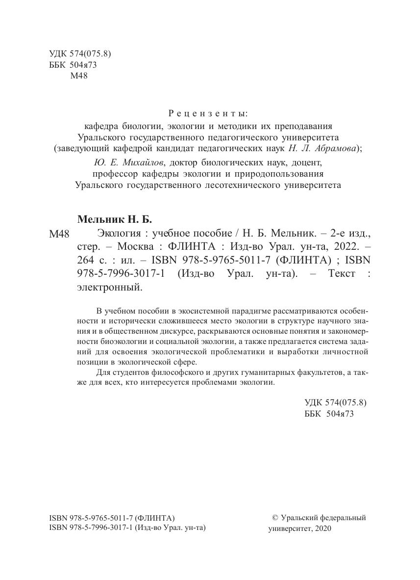 В учебном пособии в экосистемной парадигме рассматриваются особенности и исторически сложившееся место экологии в структуре научного знания и в общественном дискурсе, раскрываются основные понятия и закономерности биоэкологии и социальной экологии, а также предлагается система заданий для освоения экологической проблематики и выработки личностной позиции в экологической сфере.