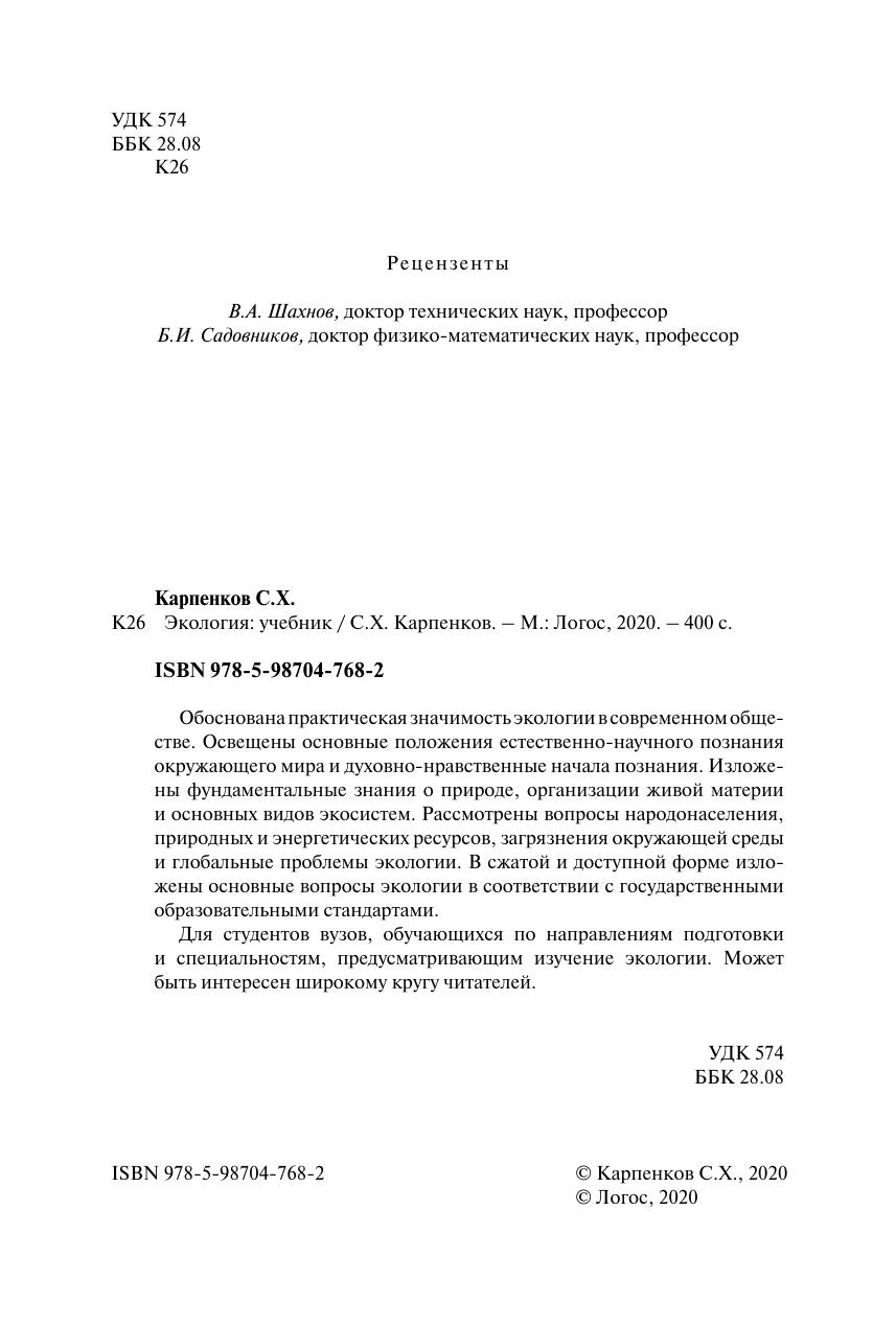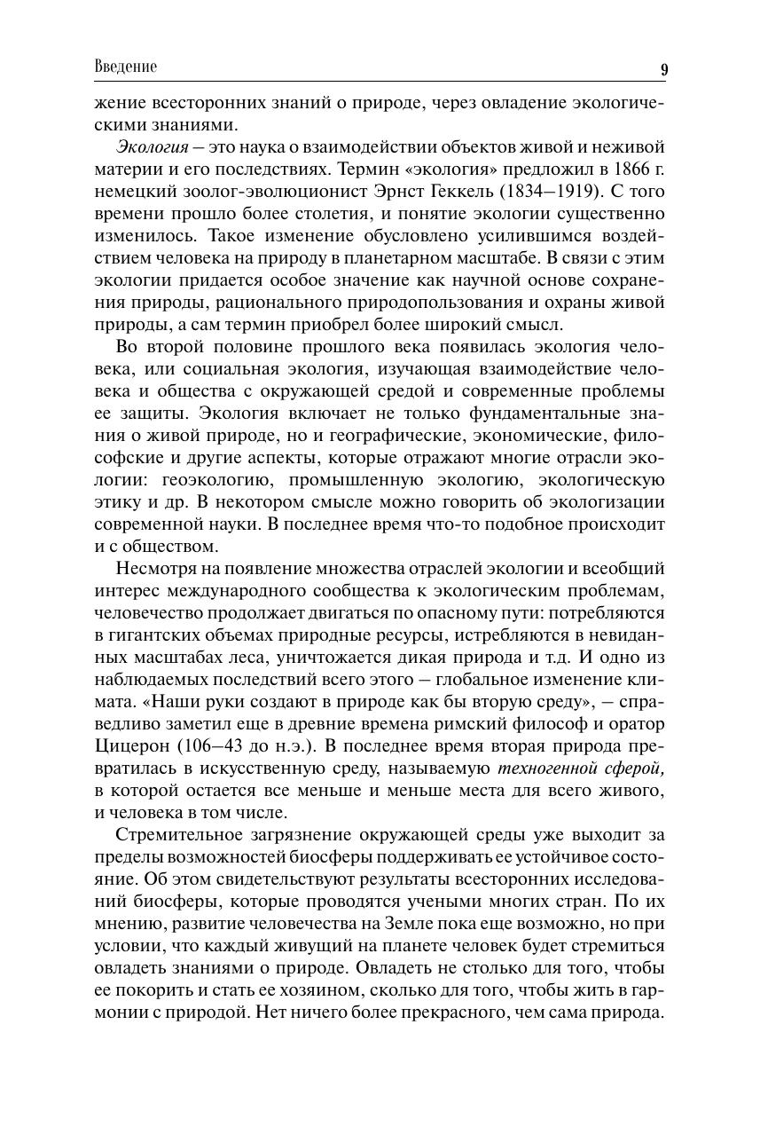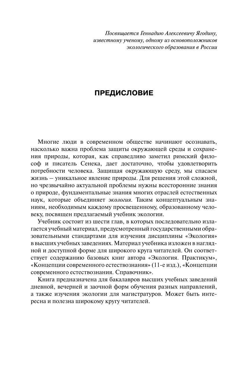 Обоснована практическая значимость экологии в современном обществе. Освещены основные положения естественно-научного познания окружающего мира и духовно-нравственные начала познания. Изложены фундаментальные знания о природе, организации живой материи и основных видов экосистем. Рассмотрены вопросы народонаселения, природных и энергетических ресурсов, загрязнения окружающей среды и глобальные проблемы экологии. В сжатой и доступной форме изложены основные вопросы экологии в соответствии с государственными образовательными стандартами. Для студентов вузов, обучающихся по направлениям подготовки и специальностям, предусматривающим изучение экологии. Может быть интересен широкому кругу читателей.