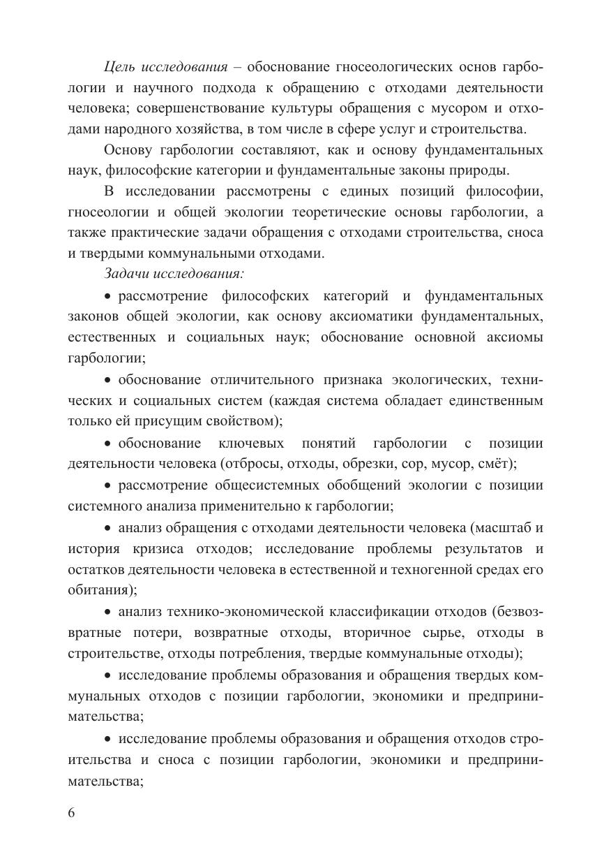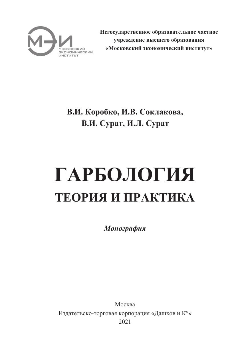 Разработаны теоретические основы гарбологии с единых позиций философии, гносеологии и общей экологии. Сформулирована основная аксиома гарбологии, представлены основные законы и принципы гарбологии. Результаты научных и прикладных исследований могут быть направлены на совершенствование обращения с отходами на уровне государственного или муниципального управления, а также могут быть полезны предпринимателям в сфере обращения с отходами.