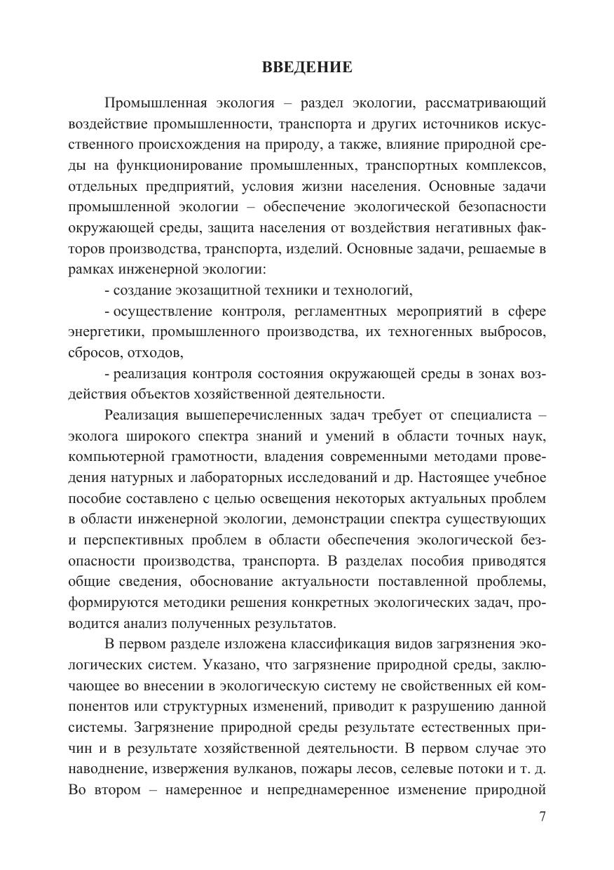В учебном пособии даны общие сведения в области инженерной экологии. Рассмотрены примеры формирования статистико-математических моделей для обработки экологических данных и прогнозирования. Выполнены расчеты параметров выбросов загрязняющих веществ от нескольких типов источников на основании регламентированных методик. Проведен анализ технологий утилизации, переработки, вторичного использования золошлаковых отходов ТЭС и твердых коммунальных отходов. В приложении даны необходимые сведения ряда разделов математики и статистики. Список литературы полностью отображает содержание пособия и нацелен на углубленное изучение проблем инженерной экологии. В пособие включены авторские результаты, полученные при выполнении прикладных научно-исследовательских работ.