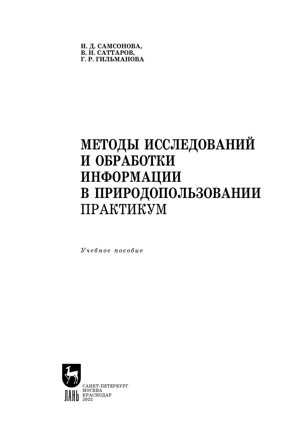Методы исследований и обработки информации в природопользовании. Практикум