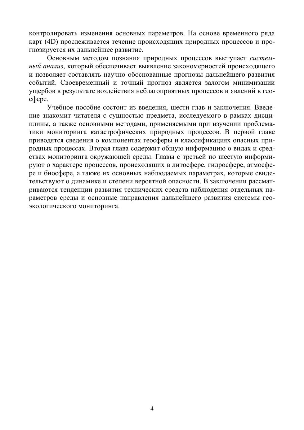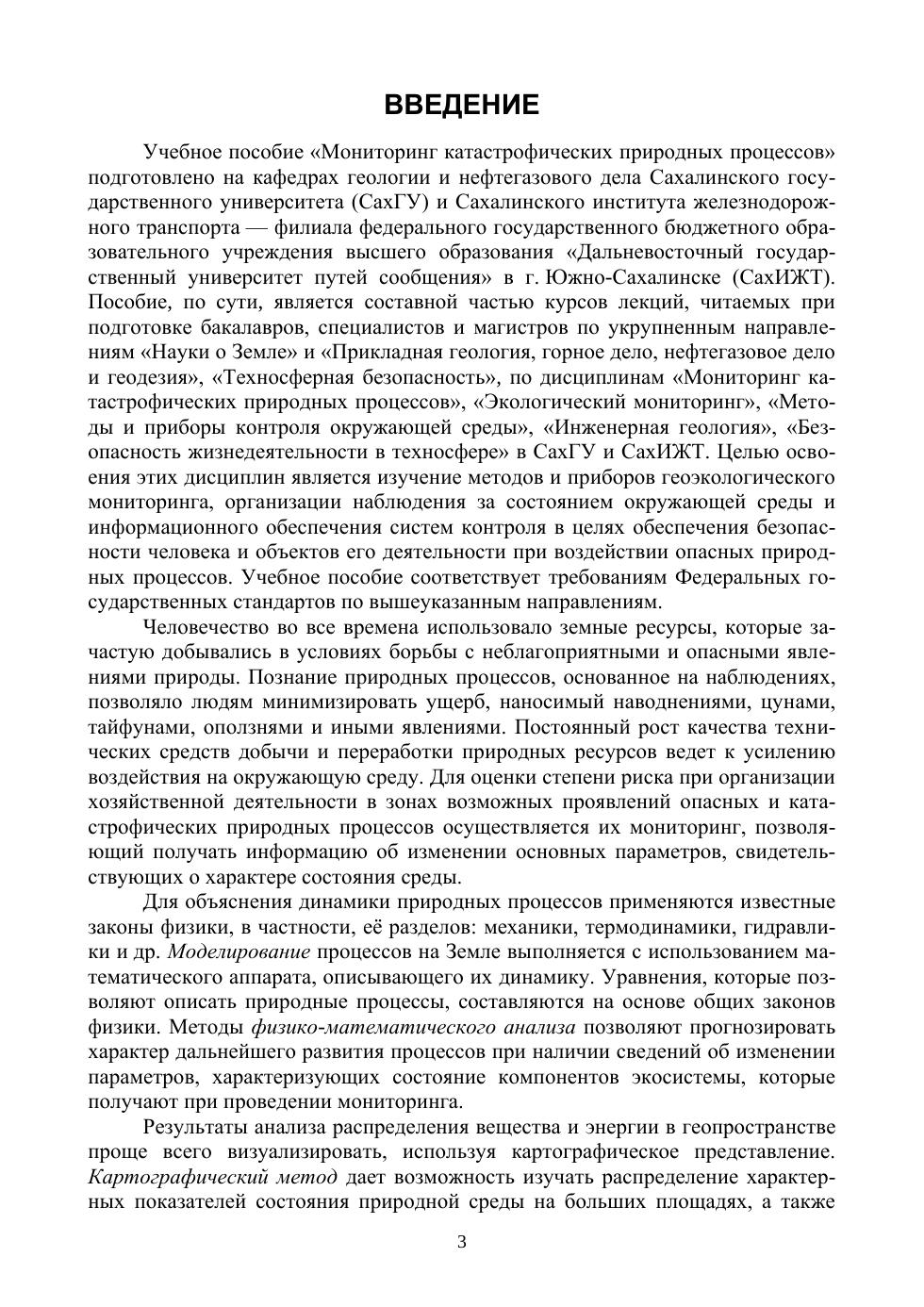 Учебное пособие содержит сведения о видах и методах мониторинга процессов в природной среде и техносфере. Особое внимание уделено методам и техническим средствам, позволяющим наблюдать процессы, которые могут достигать катастрофического характера. Составлено в соответствии с требованиями ФГОС ВО по направлениям УГС «Науки о Земле», «Прикладная геология, горное дело, нефтегазовое дело и геодезия», «Техносферная безопасность». Может быть использовано студентами других направлений, изучающими соответствующие дисциплины и проходящими учебные полевые практики, на которых осваиваются методы изучения компонентов природной среды и техносферы.