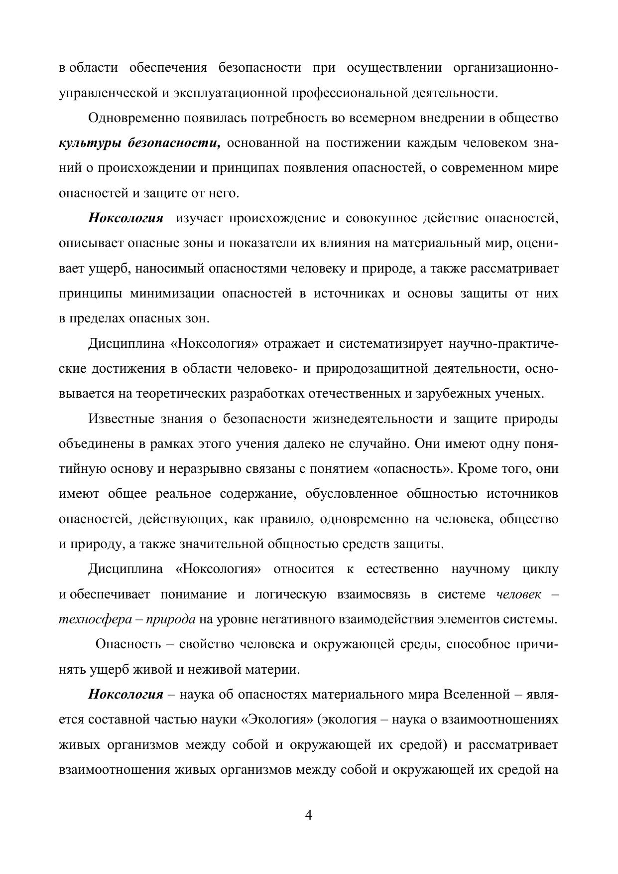 В учебном пособии сформулированы теоретические основы ноксологии – науки об опасностях. Рассмотрены различные виды опасностей и методы оценки негативного воздействия реализованных опасностей на человека и окружающую среду, сформулированы принципы, методы и средства защиты человека и среды обитания от этого воздействия. По каждому разделу приводятся контрольные вопросы и задачи для самостоятельного решения.