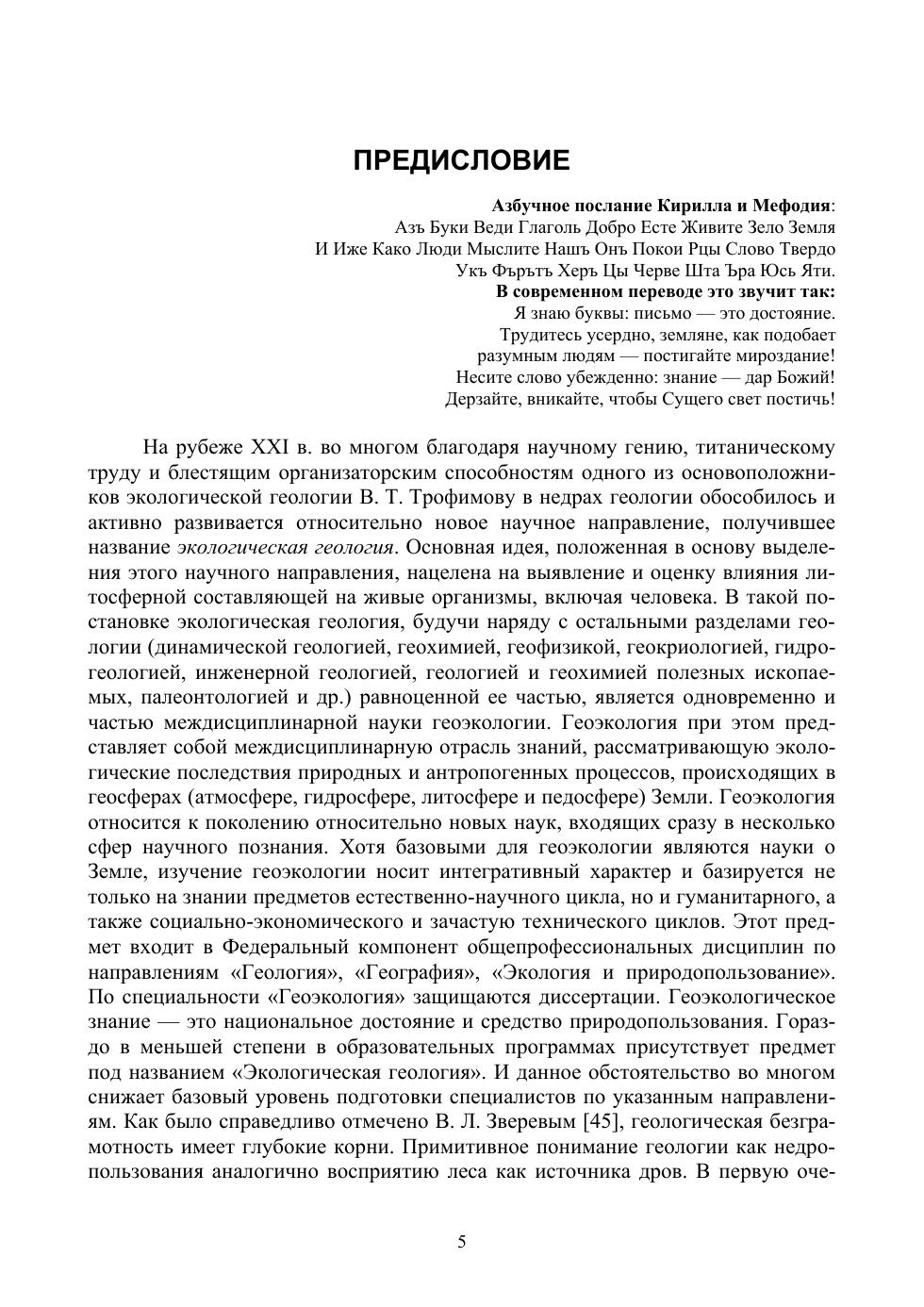 В учебном пособии рассмотрены естественно-научные предпосылки и международные тенденции, лежащие в основе обособления экологической геологии как науки на стыке геологии и биологии, даны базовые основы биологических знаний и приведены краткие сведения о токсическом воздействии химических веществ на живые организмы. Подробно рассмотрено понятие об эколого-геологических условиях, подходах к их оценке и отображению на специальных картах. Приведены сведения о влиянии особенностей состава, строения и свойств компонентов литосферы, а также происходящих в ее пределах процессов на живое. Обозначены перспективы дальнейшего развития экологической геологии как науки о взаимосвязи живой и неживой природы. Для студентов и аспирантов, обучающихся по направлениям «Геология», «Экология и природопользование». Может быть использовано преподавателями для чтения курса лекций, а также специалистами, занимающимися решением проблем экологической геологии, геоэкологии и рационального природопользования.