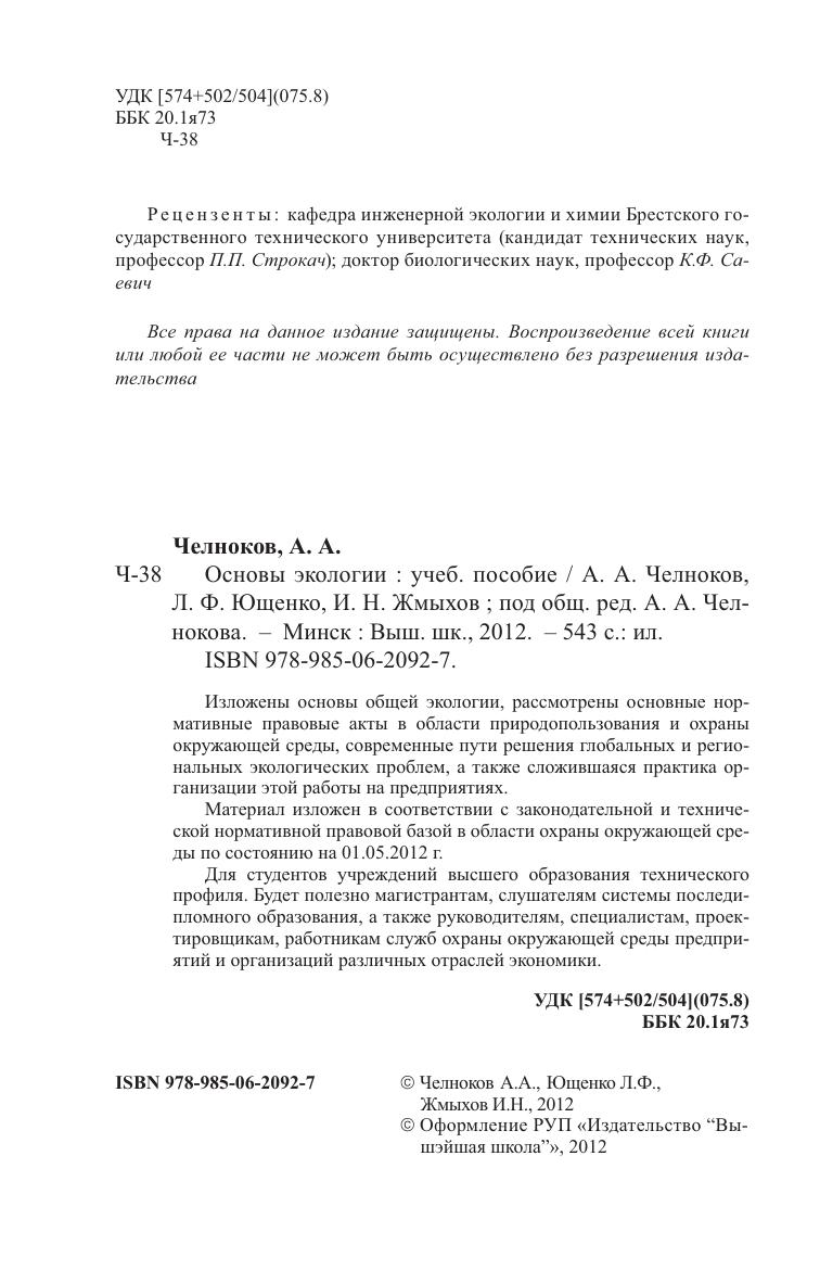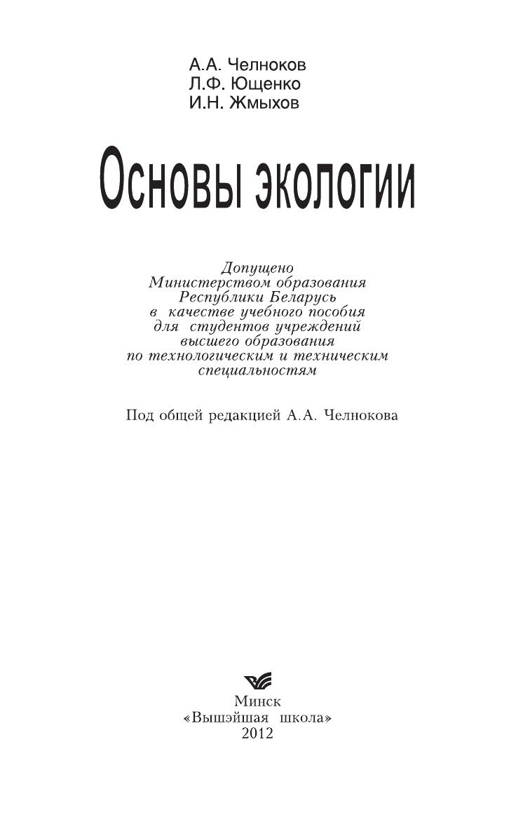Изложены основы общей экологии, рассмотрены основные нормативные правовые акты в области природопользования и охраны окружающей среды, современные пути решения глобальных и региональных экологических проблем, а также сложившаяся практика организации этой работы на предприятиях. Материал изложен в соответствии с законодательной и технической нормативной правовой базой в области охраны окружающей среды по состоянию на 01.05.2012 г. Для студентов вузов технического профиля. Будет полезно магистрантам, слушателям системы последипломного образования, а также руководителям, специалистам, проектировщикам, работникам служб охраны окружающей среды предприятий и организаций различных отрасл