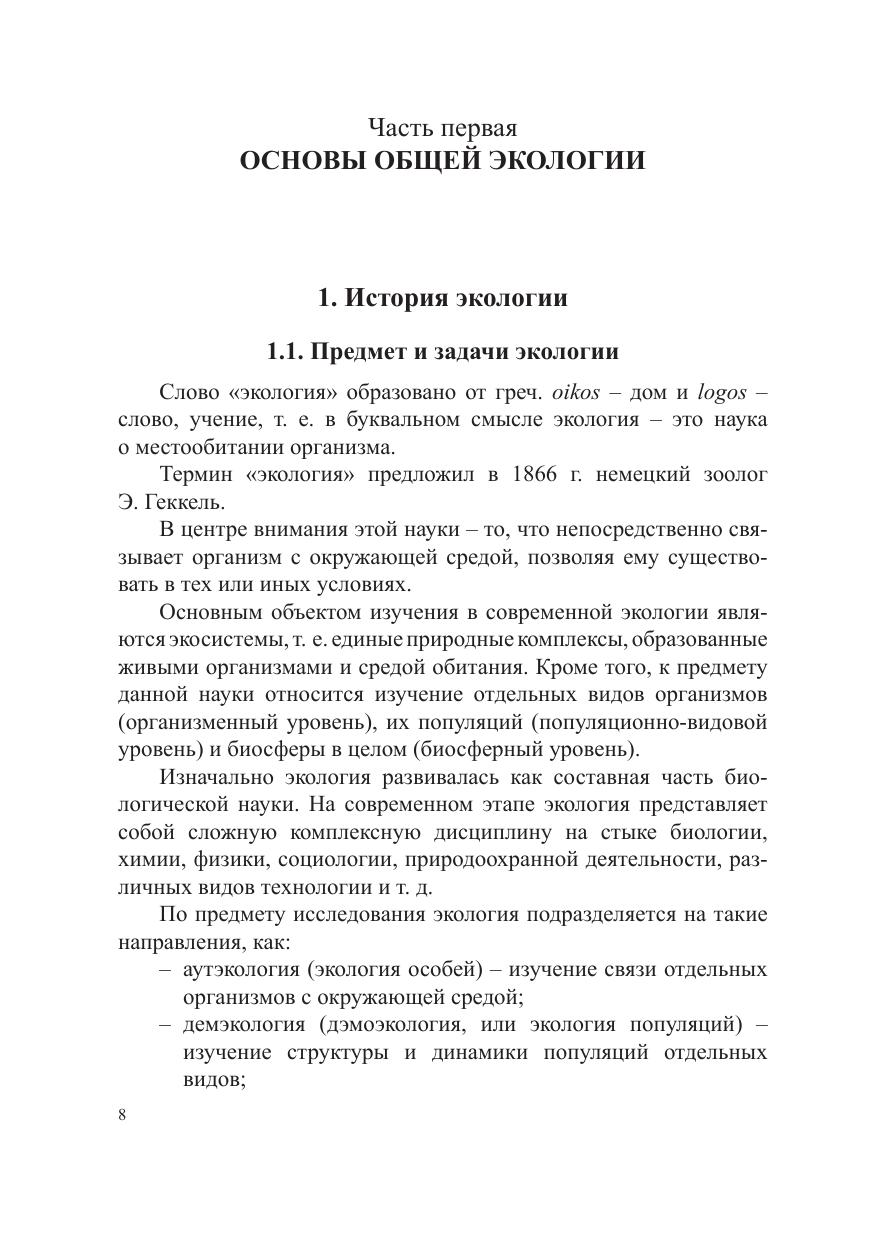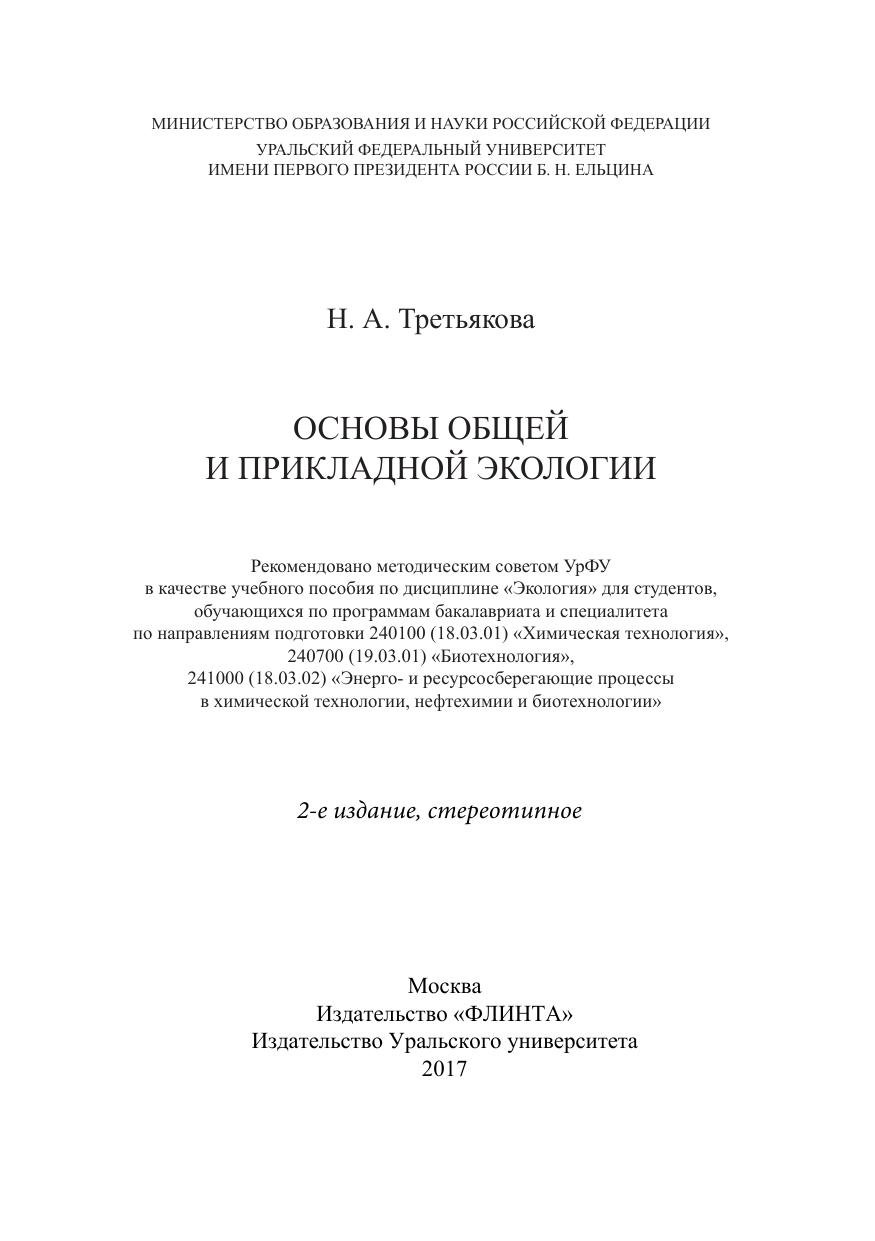 В учебном пособии рассматриваются вопросы общей и прикладной экологии, излагаются основы учения В.И. Вернадского о биосфере, описываются экологические проблемы и освещаются основные направления деятельности по охране окружающей среды и рациональному природопользованию. Предназначено для бакалавров, обучающихся по направлениям 240100 – «Химическая технология», 240700 – «биотехнология», 241000 – «Энерго- и ресурсосберегающие процессы в химической технологии, нефтехимии и биотехнологии».