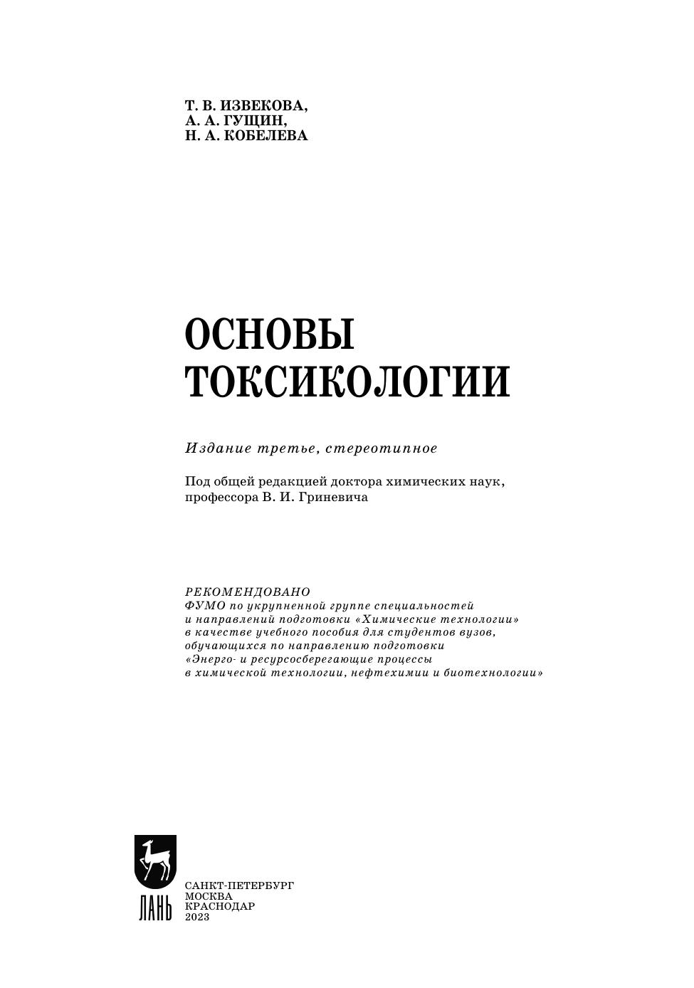 Учебное пособие подготовлено на основе требований федеральных государственных образовательных стандартов высшего образования. Содержит краткий лекционный материал, список литературы и вопросы для самоконтроля. Приведены термины и основные понятия токсикологии, факторы, определяющие токсические эффекты, принципы токсикологического нормирования и классификации вредных веществ. Предназначено для бакалавров высших учебных заведений, обучающихся по направлению подготовки «Энерго- и ресурсосберегающие процессы в химической технологии, нефтехимии и биотехнологии» (профиль «Защита окружающей среды и промышленная экология»), «Техносферная безопасность» (профиль «Инженерная защита окружающей среды»), магистрантов по направлению «Техносферная безопасность» (магистерская программа «Промышленная экология и рациональное использование природных ресурсов») и аспирантов направления «Химические науки» (профиль «Экология»).