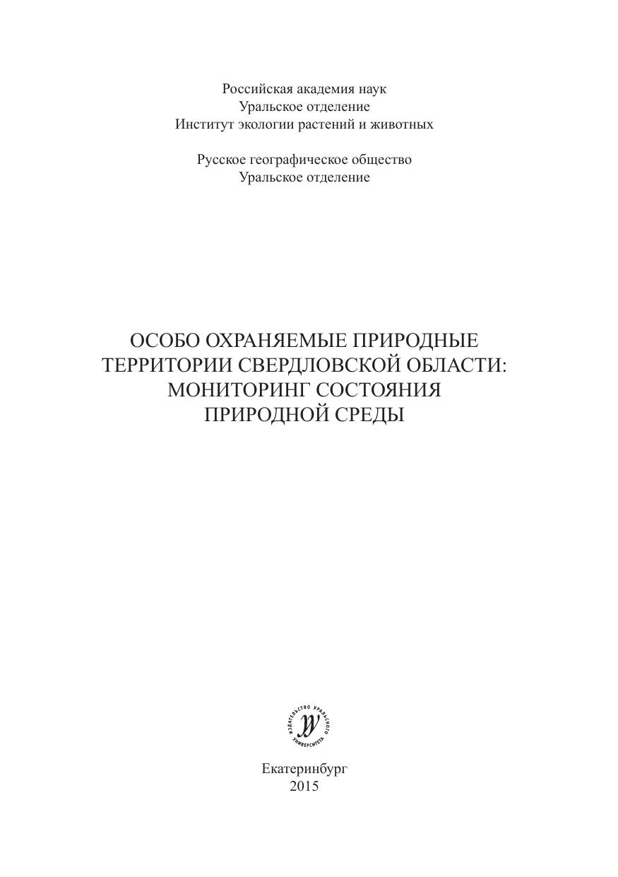 Особо охраняемые природные территории Свердловской области: мониторинг состояния природной среды: монография
