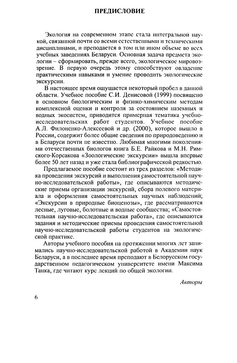 Посвящено учебной полевой практике по экологии, которая является заключительным этапом в закреплении знаний, полученных при изучении лекционных курсов "Экология" и "Основы экологии". Состоит из трех разделов. В первом рассматриваются принципы и методы проведения экскурсий в различных природных сообществах. Второй раздел посвящен описанию экскурсий в лесные, луговые, болотные и водные биоценозы. В третьем разделе предлагаются темы для самостоятельной научно-исследовательской работы и приводится методика их выполнения с приемами обработки и иллюстрации полученных данных. Для студентов географо-биологических специальностей вузов. Будет полезно преподавателям и учащимся колледжей, гимназий, средних школ, руководителей биологических кружков, любителей природы.